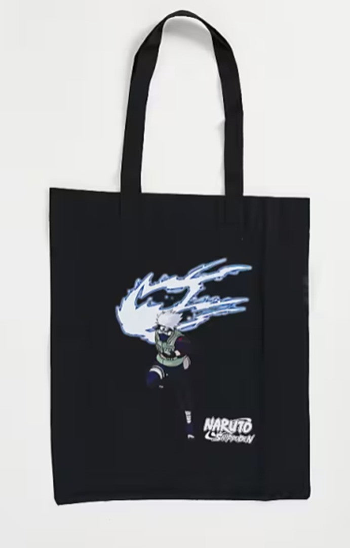 ASOS DESIGN tote bag in black cotton with Kakashi Chidori print 45 x 38cm -BLACK