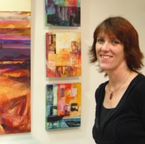 Kate Boyce is a UK based artist and designer who is passionate about nature, colour, landscape and light. She uses paint, photography, collage and print to construct mixed media original artwork. Originally trained as a surface pattern designer in Stoke On Trent, Kate worked for several years in the interior textile design industry. She became inspired to turn to landscape painting in the early 2000’s after settling in the picturesque and dramatic countryside of West Yorkshire. She has a studio in Hebden Bridge – her adoptive town where she also lives with her writer partner and two daughters. Kate lives with ME/Chronic Fatigue Syndrome.