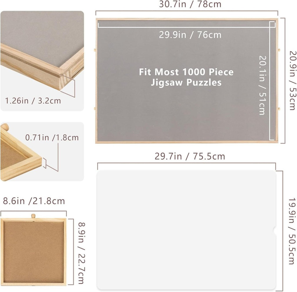 1000 Piece Puzzle Table - Featuring a usable area of 78 x 53 cm, applicable to most 1000 piece jigsaw puzzle games. Covered with soft premium flannelette to increase friction and to prevent puzzle pieces from falling off.