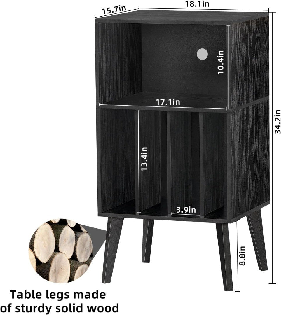 - [Large Record Player Stand] This sturdy record stand features an entirely wooden structure that gives it a vintage look and texture. The size of the record storage is 18.1 inches L x 15.7 inches W x 34.2 inches H and therefore fits perfectly into your workflow. It can hold up to 100 pounds and 160 records.