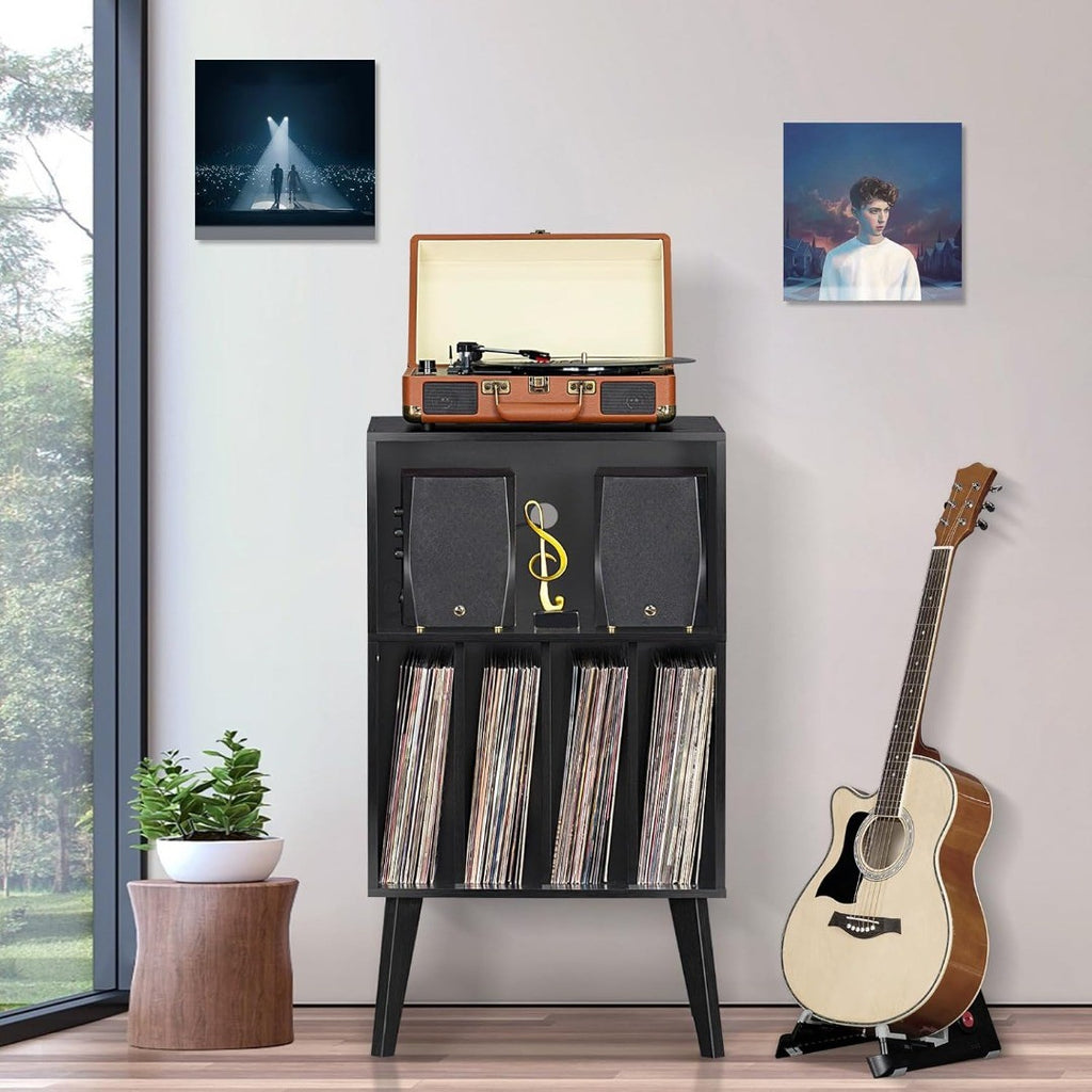- [Large Display Space] We designed the middle section of the record cabinet to be 10.4 inches, providing ample storage space for you to display your audio equipment and collectibles. You can also store additional records. The circular holes on the back of the cabinet make it easy to connect your music device. Invite your music-loving friends and host a wonderful music party together!