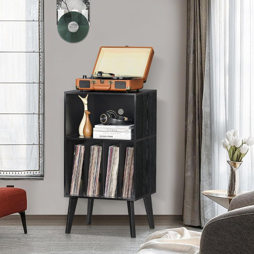 LELELINKY Record Player Stand, Turntable Stand Hold Up To 160 Albums, Mid-Century Vinyl Storage Table With Legs, Record Player Holder Display Cabinet Rack For Bedroom Living Room, Black