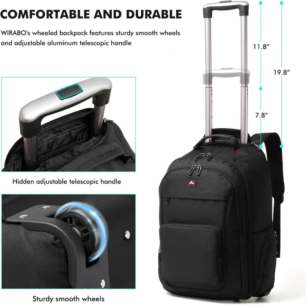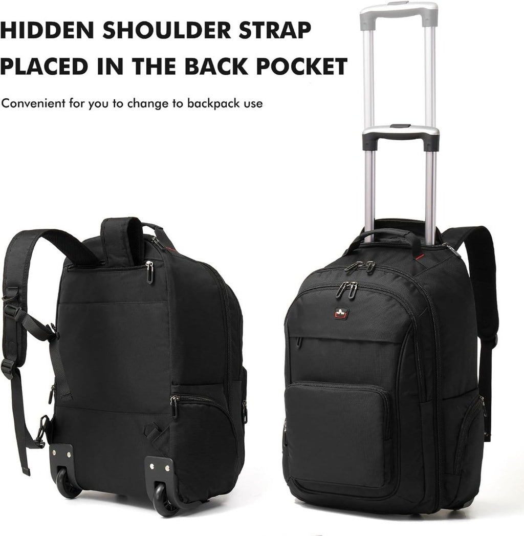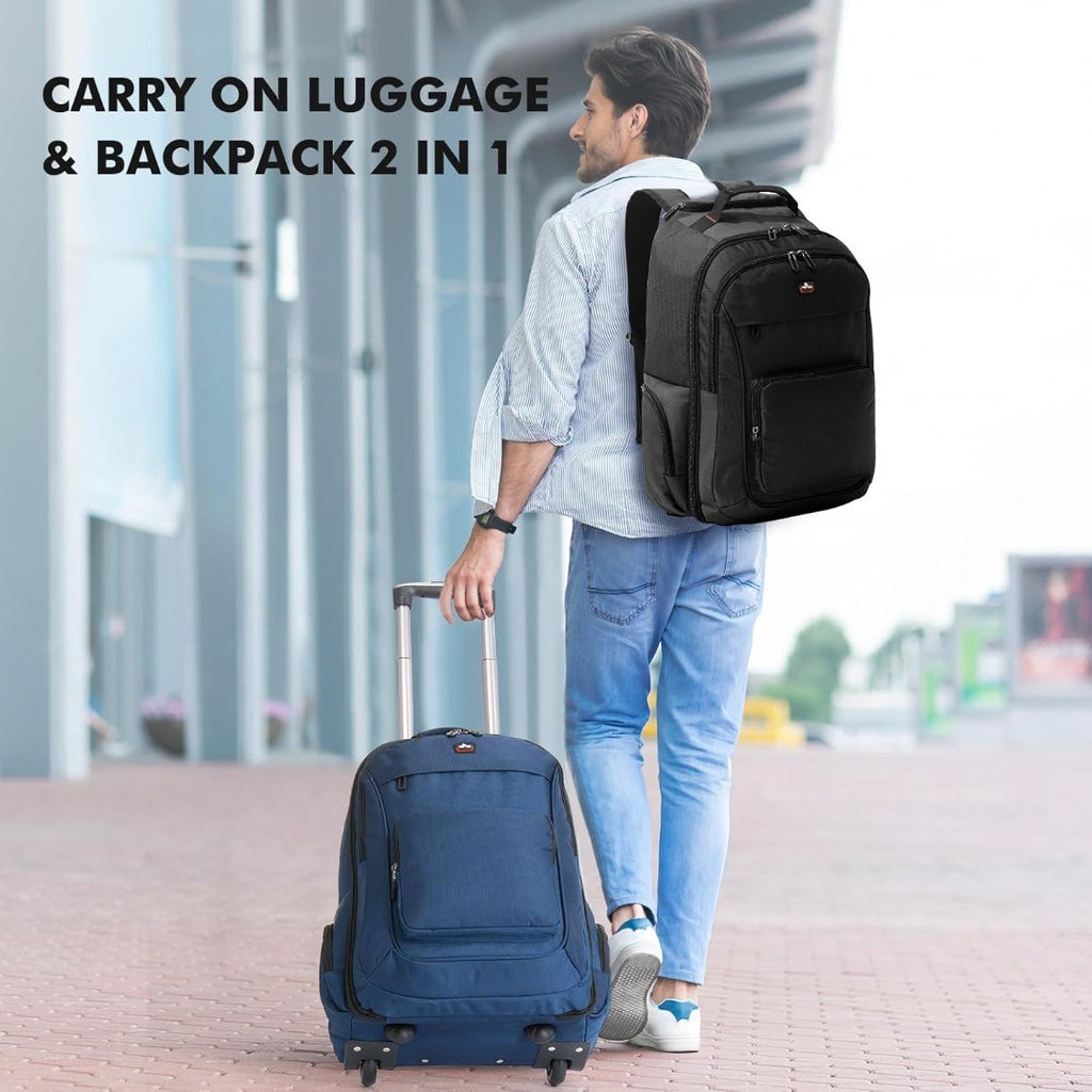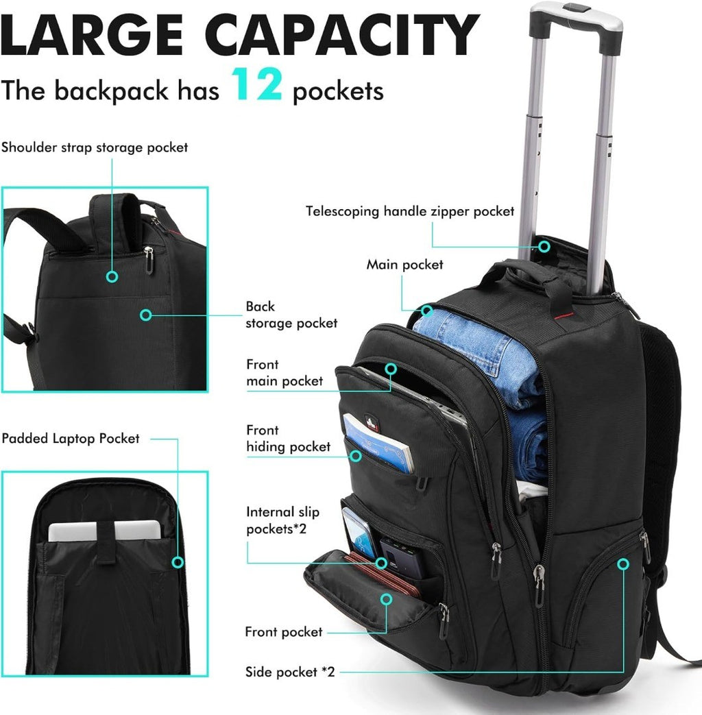 MATEIN Travel Backpack Laptop Bag with Wheels Black