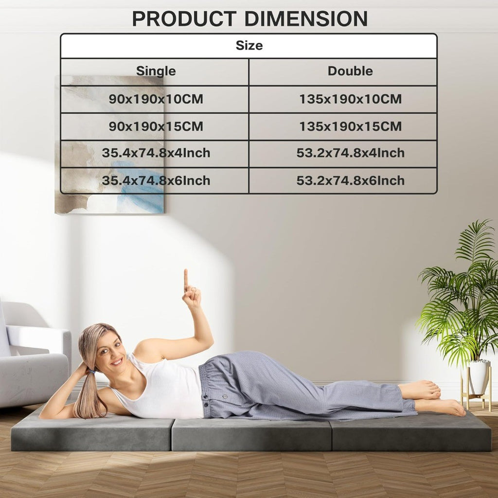 - 【Multifunctional Design】 The Molphit foldable floor mattress is a versatile addition to your home or travel essentials. It functions perfectly as a guest bed or a temporary floor sofa for activities like reading, gaming, yoga, or watching videos. Thanks to its tri-fold design, it’s easy to fold and store, saving home space when not in use.