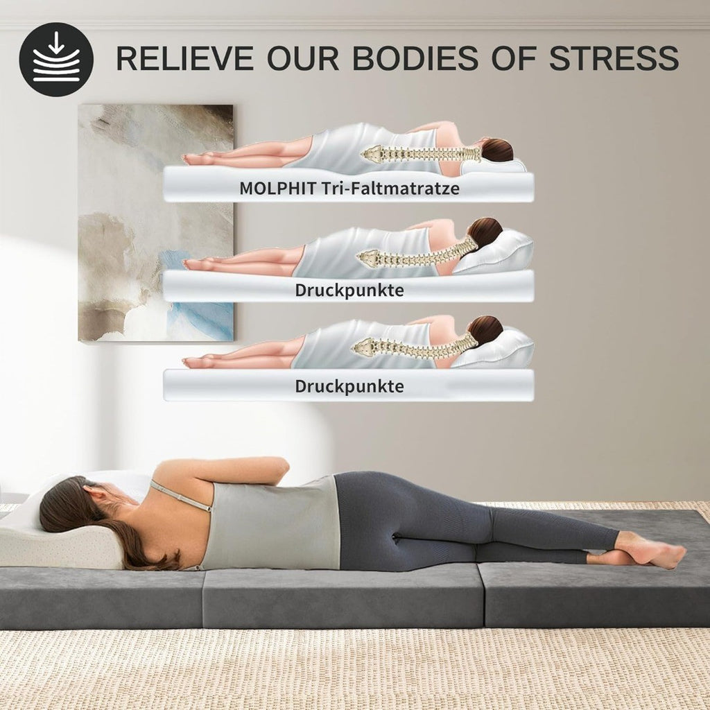 - 【Superior Support & Comfort】 The Molphit single folding mattress is crafted from high-density, medium-firm memory foam. Its ergonomic design ensures optimal body support while effectively relieving pressure points, delivering a cloud-like sleeping experience. Combining comfort, durability, and convenience, this portable mattress is the perfect choice for a restful night's sleep.