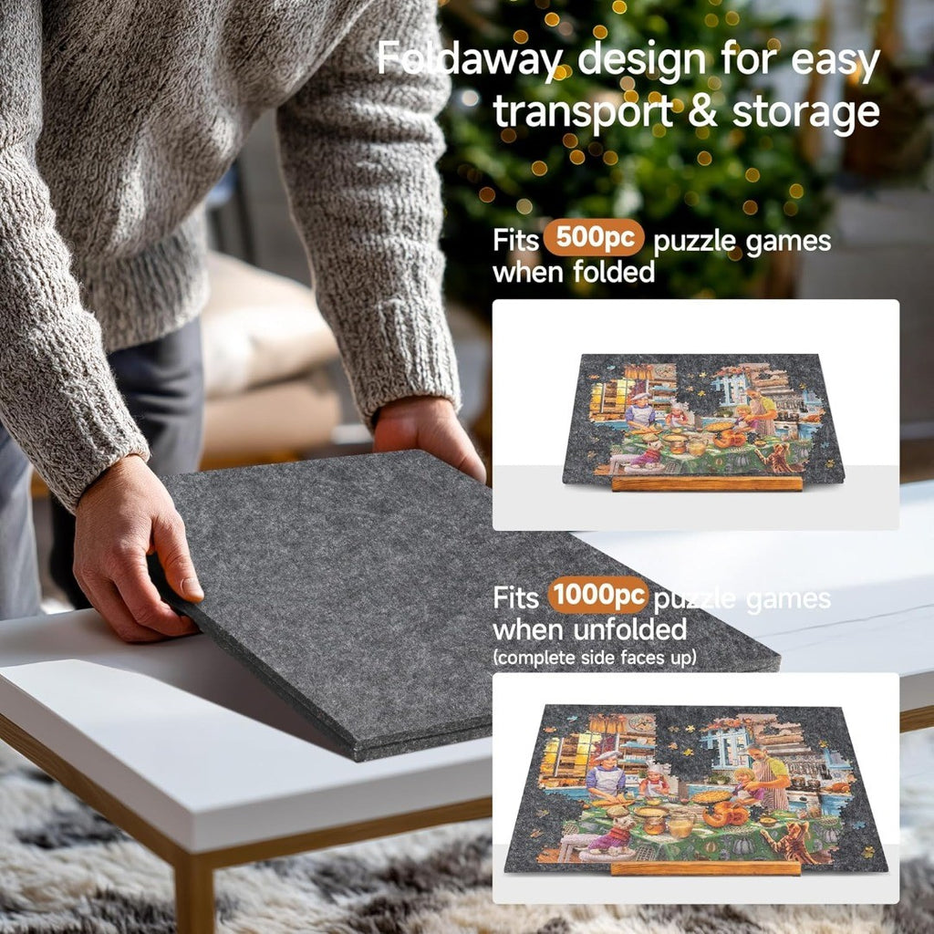Foldaway Design - Our puzzle board features a foldaway function that makes it easy to store and take away. Fits 500 piece puzzles when folded, and 1000 piece puzzles when unfolded.