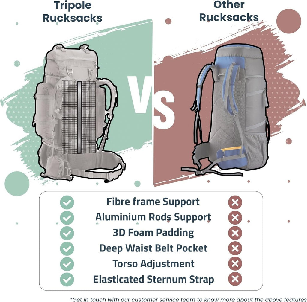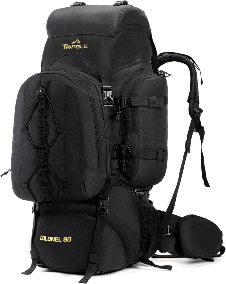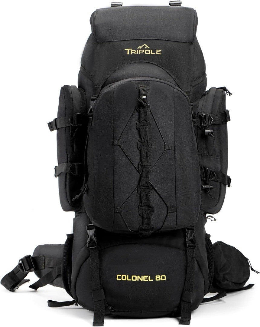 Tripole Colonel 80 Litre Backpack + Detachable Day Pack, Black, Small Hiking Backpack.