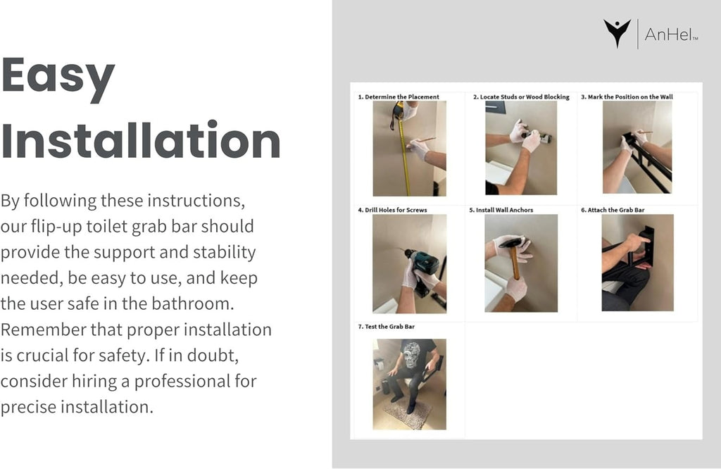 [EASY INSTALLATION] Screw-In Installation: A secure mount ensures your wall mount grab bar stays firmly in place. It comes with screws and wall anchors included, ensuring hassle-free setup.