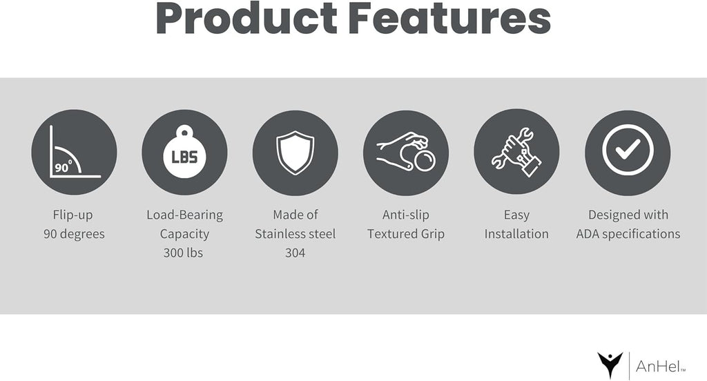 [FLIP-UP DESIGN] Foldable & Space-Saving: Its ingenious 90° vertical rotation lets you fold it away effortlessly when not in use, reclaiming valuable bathroom space. Safety meets smart design!