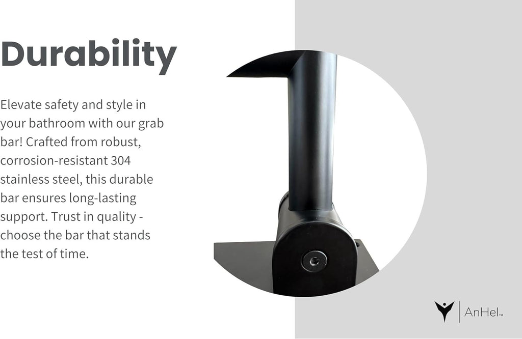 [DURABILITY] Material: High-Grade Stainless Steel. Crafted from robust, corrosion-resistant 304 stainless steel, this stainless steel grab bar ensures long-lasting support.