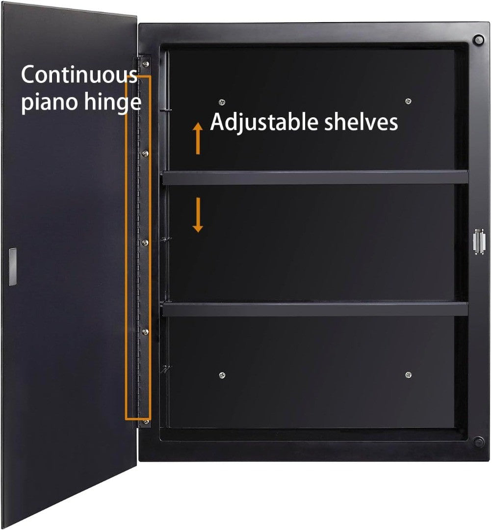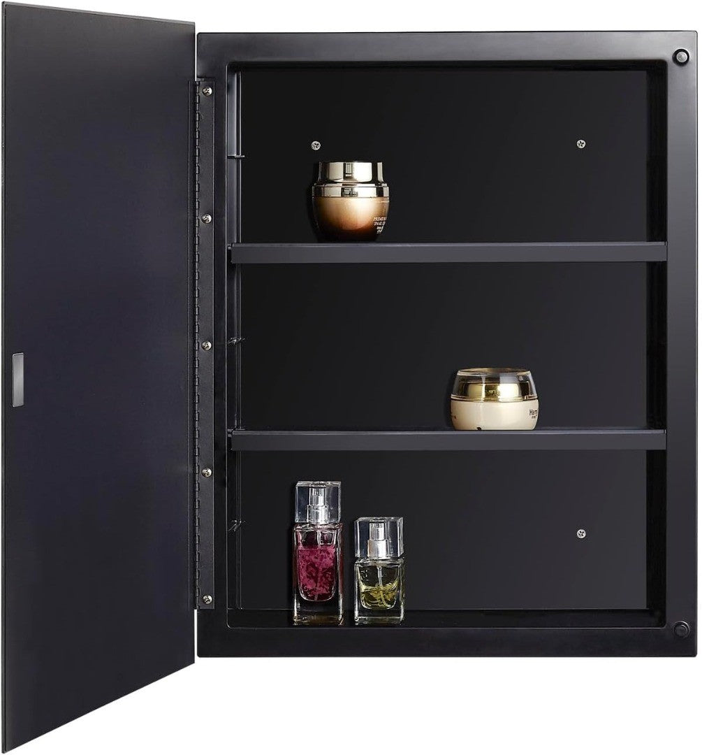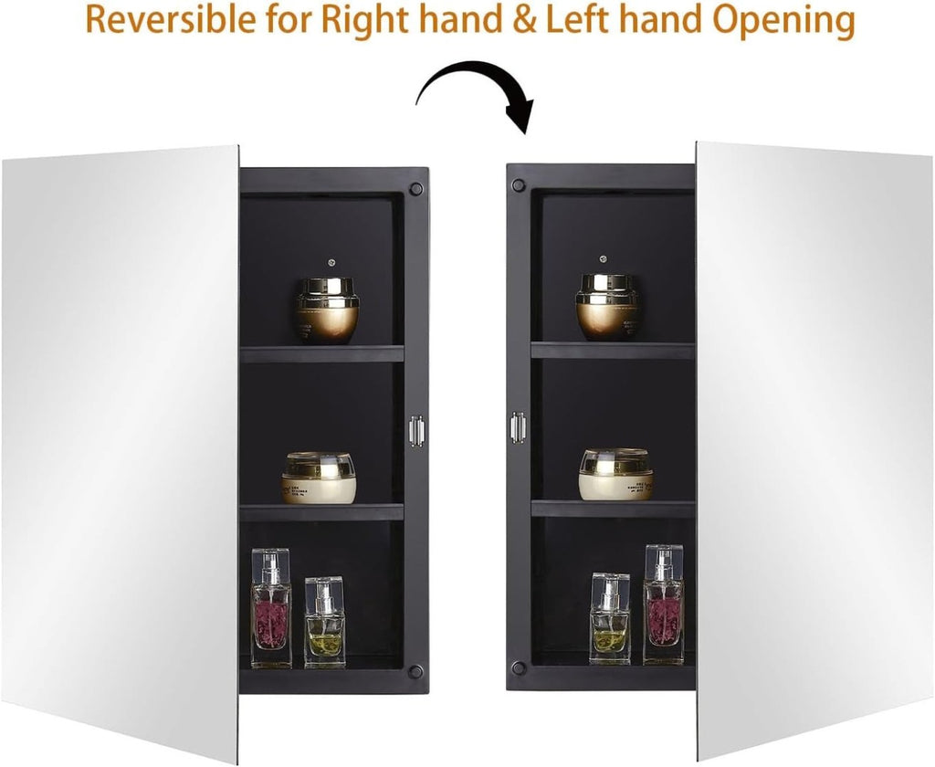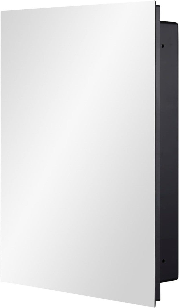 Fundin Black Plastic Mirror Cabinet with Polished Edge Mirror Door, Recessed and Surface Mount, 40 x 51 cm