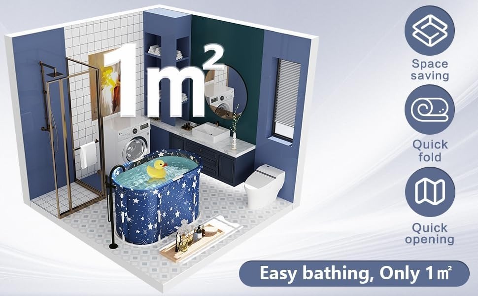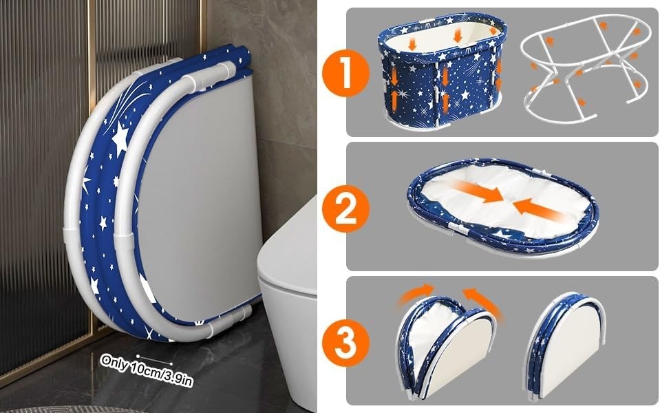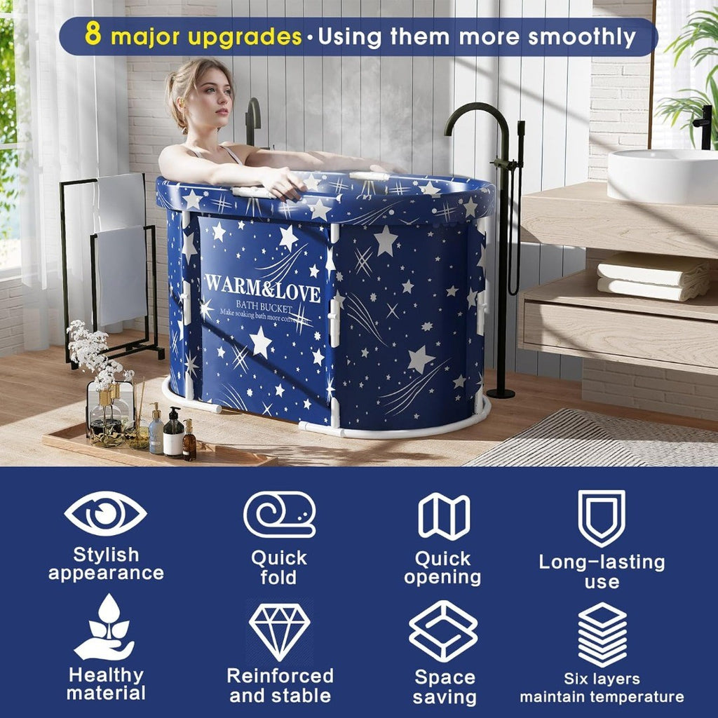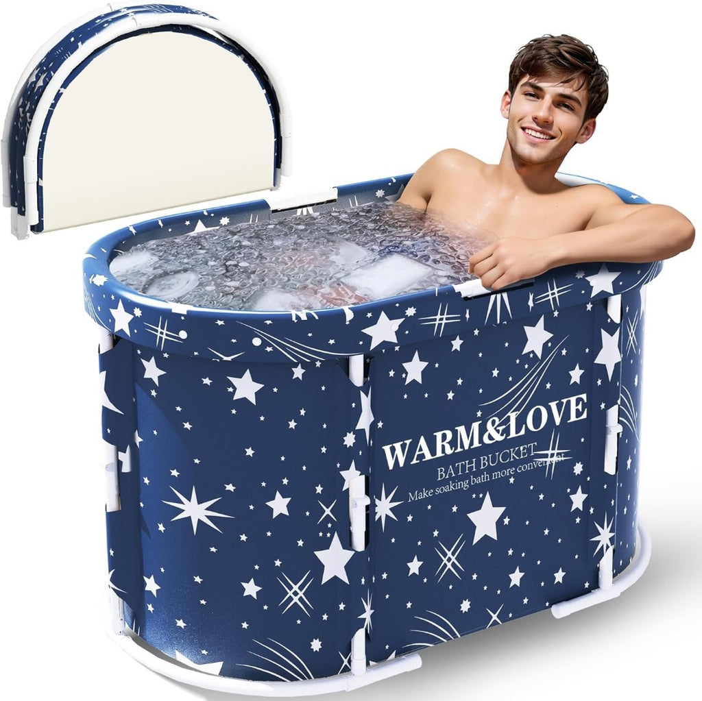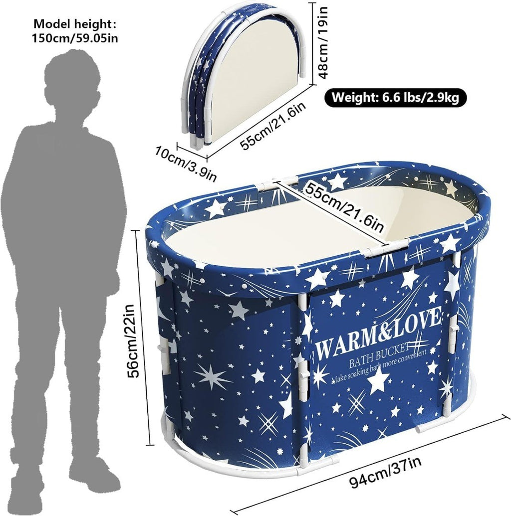 Portable Bathtub, Foldable Freestanding Bathtub for Adults and Kids, Therapy Tub for Shower Stall Bathroom Fold Up Soaking Bath Tub, Hot SPA, Ice Bath Tub, 37''x21.6''x22'' (Starry Blue)