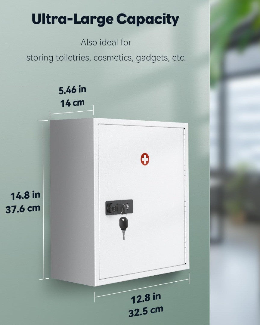 Sturdy & Secure: Well-constructed by rigid steel with a white coating, the medical cabinet is resistant to rust, scratch or impact. Thick and solid metal plate prevents it from being pried open, guaranteeing your exclusive access to the items inside