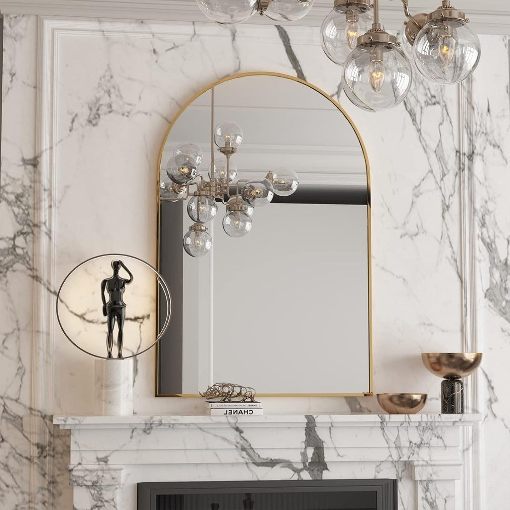 Application Scenario: This 50 x 75cm half arch-shaped metal frame mirror can be used as the entrance wall mirror, bedroom mirror, corridor mirror, sink mirror, or bathroom mirror. It is an art decorative mirror and a modern mirror