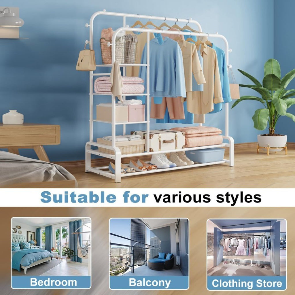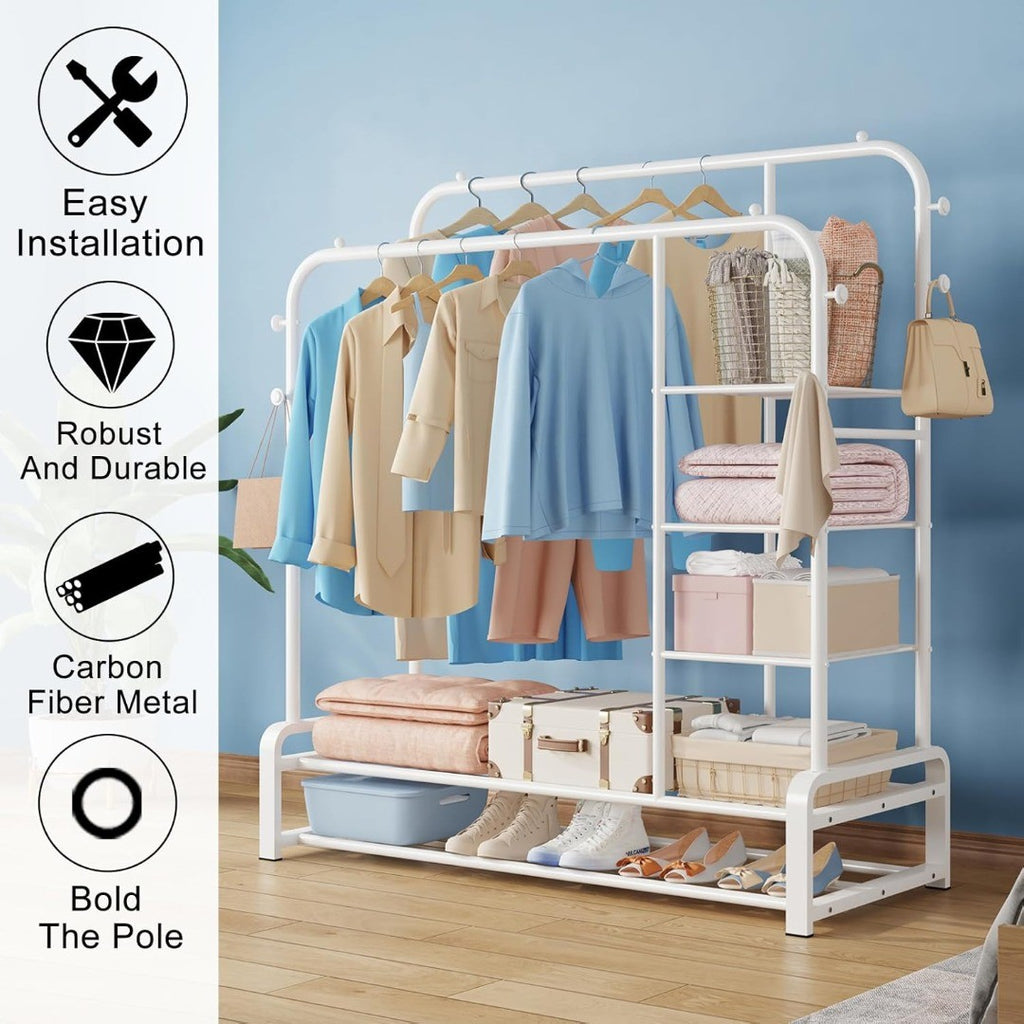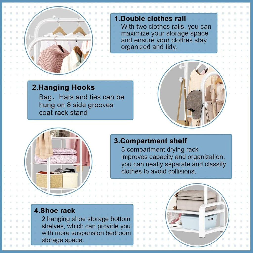 double clothes rack. The 8 side grooves provide ample space to hang bags, hats,