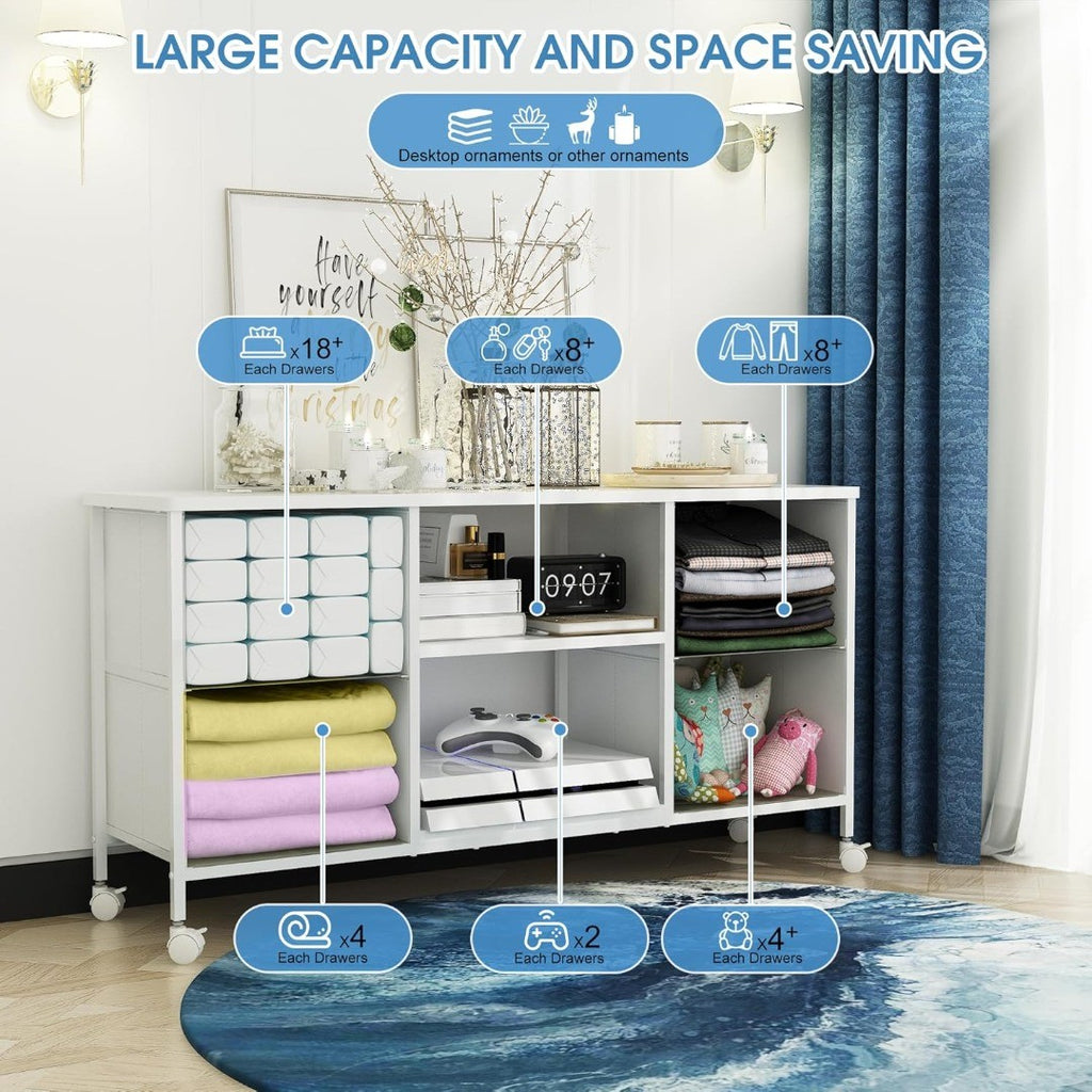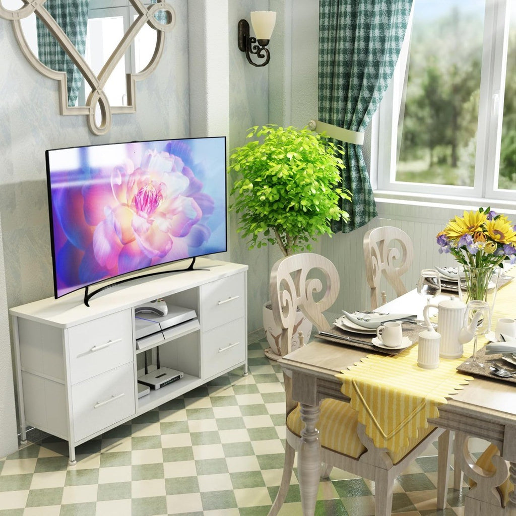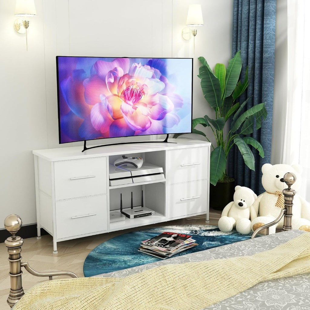 Chest of Drawers, Fabric Storage Drawers for Bedroom, TV Stand with Storage Shelf, Castors and Metal Frame (White)
