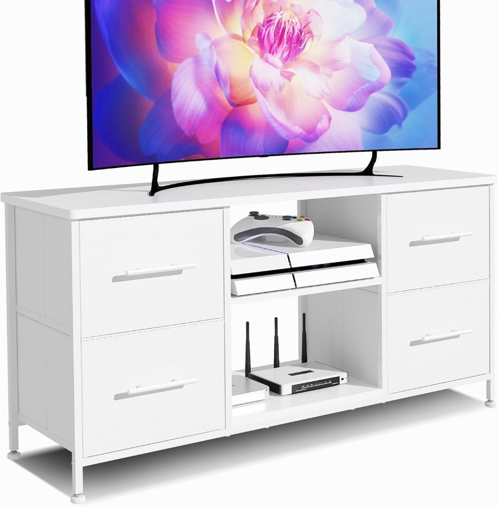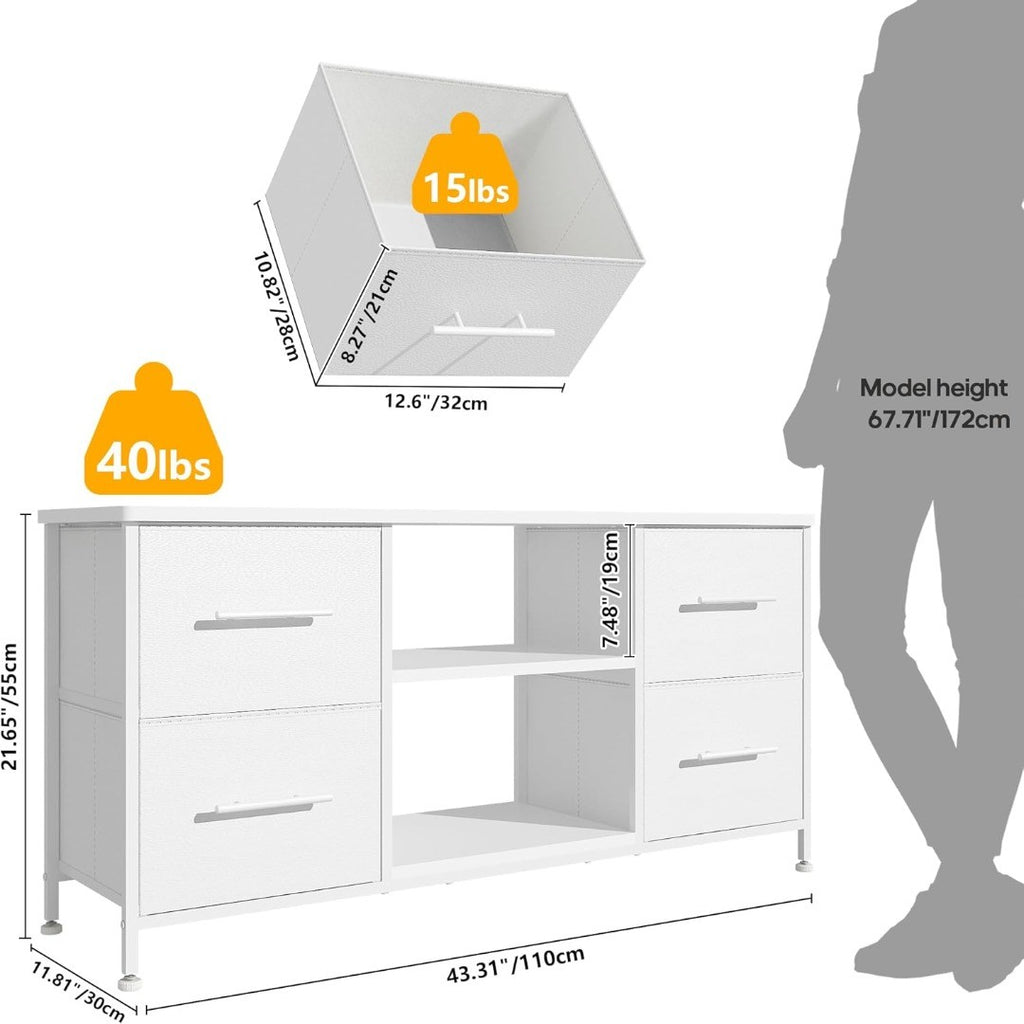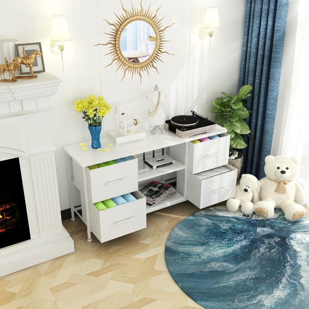 Chest of Drawers, Fabric Storage Drawers for Bedroom, TV Stand with Storage Shelf, Castors and Metal Frame (White)