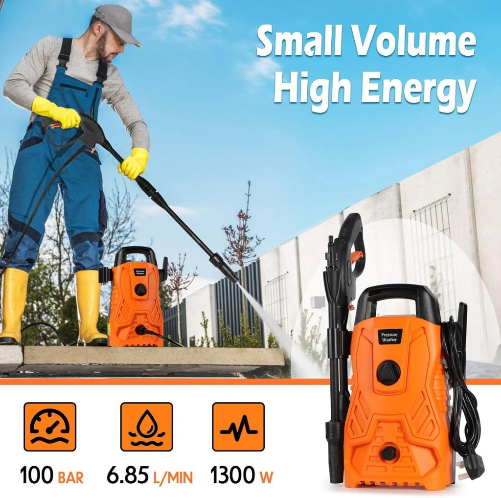 ElectricPressure Washer,1300w Max.100Bar Power Washer, Jet Washer with Foam Cannon for Cars/Fences/Driveways/Home/Patios