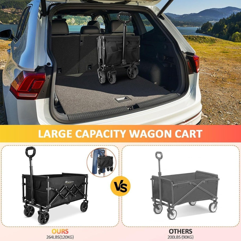 RAINBEAN Festival Trolley on Wheels Folding Wagon Foldable Trolley Heavy Duty Shopping Cart Utility for Camping Garden Beach Sports Fishing, Black (100L)