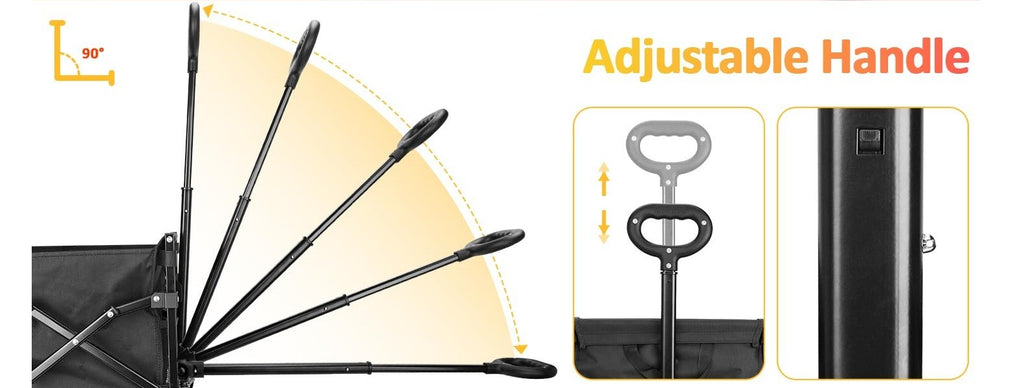 Adjustable Handle: The handle of the folding shopping cart can be extended in length and adjusted in angle. The handle locks in place so you don't have to worry about the handle getting out of control or falling off while pushing the cart.