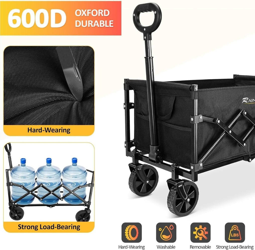 Large Capacity Folding Trolley: RAINBEAN trolley cart with more storage space for more items, it can be widely used for shopping, camping, fishing, picnic in the park, beach and so on.