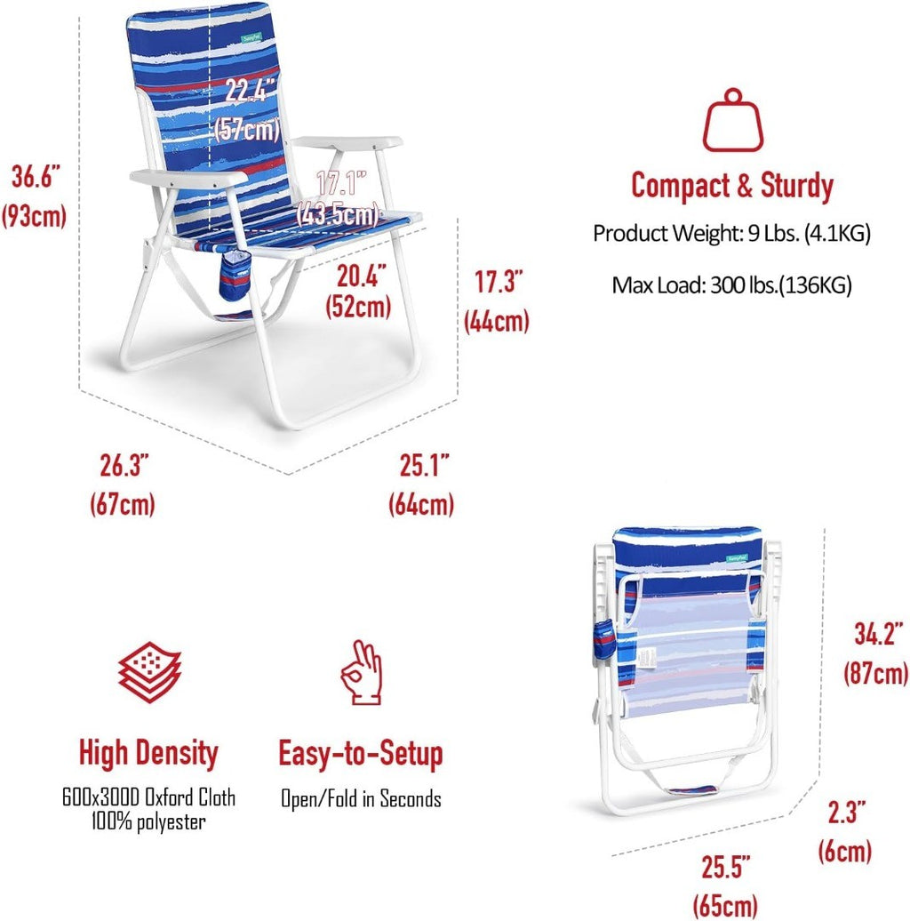 High Seat Beach Chair: 1 Position High Back high off ground tall beach chair but don't recline. This lawn chair can not adjust the back.