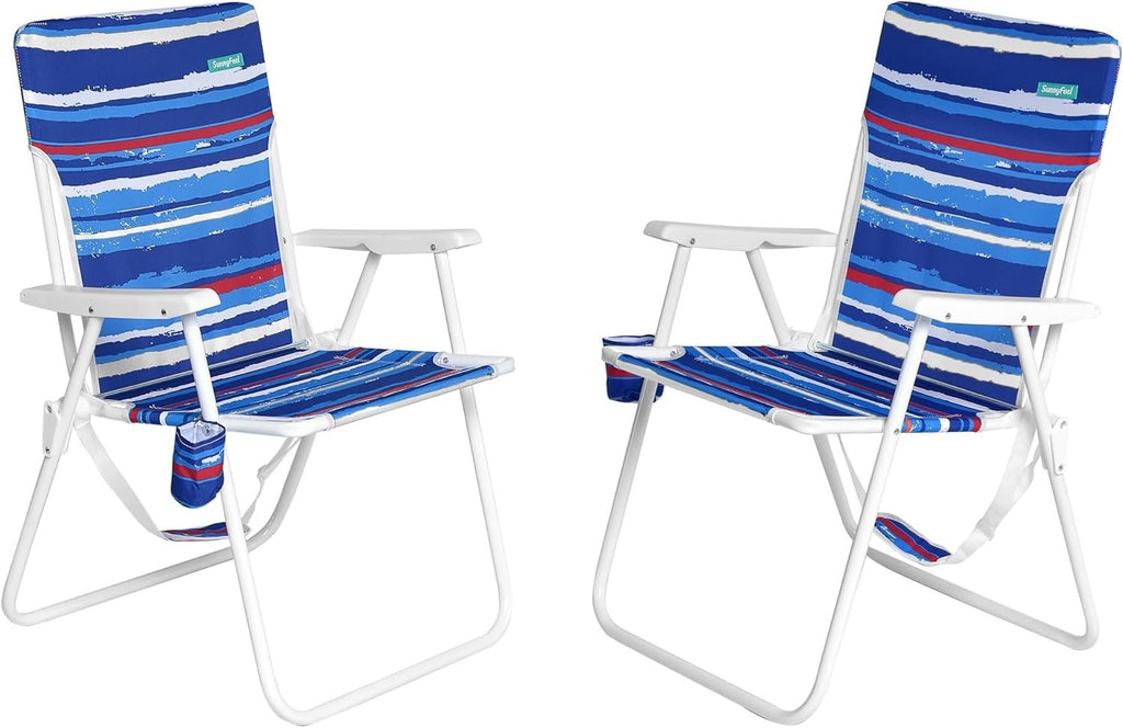 SUNNYFEEL 15" Tall Folding Beach Chair for Adults 2 Pack, Oversized Portable High Seat Sand Chair Heavy Duty 300 LBS, Foldable Camping Lawn Chairs for Camp/Outdoor/Travel/Picnic/Concert/Sports