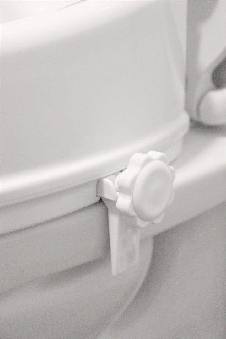 STABLE AND SAFE: Its two lateral twist and lock clamps secure the raised toilet seat providing the user security and stability, preventing accidents or unwanted movements.