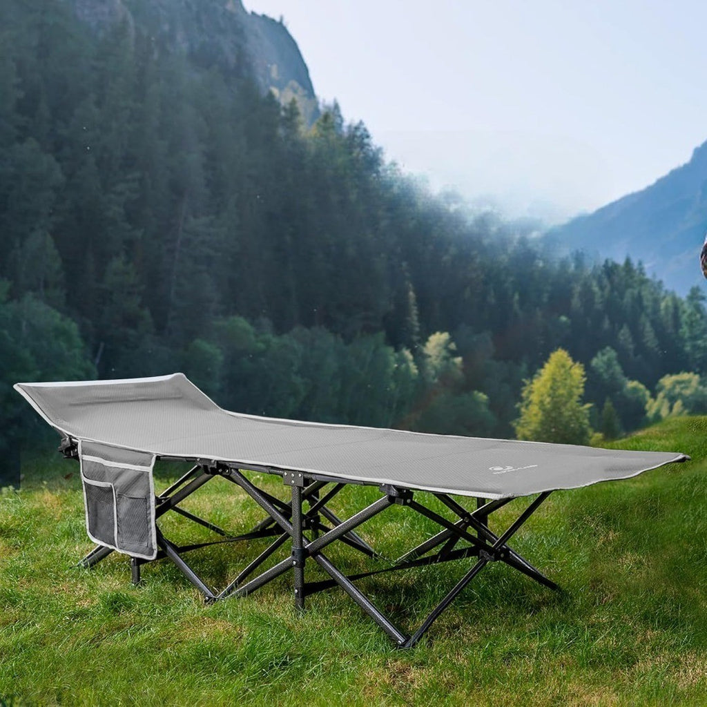 ALPHA CAMP Camp Beds for Adults Oversized Camping Folding Cot Camping Bed Supports 600 lbs Portable Camp Bed Heavy Duty Camp Cot with Carry Bag (Grey)