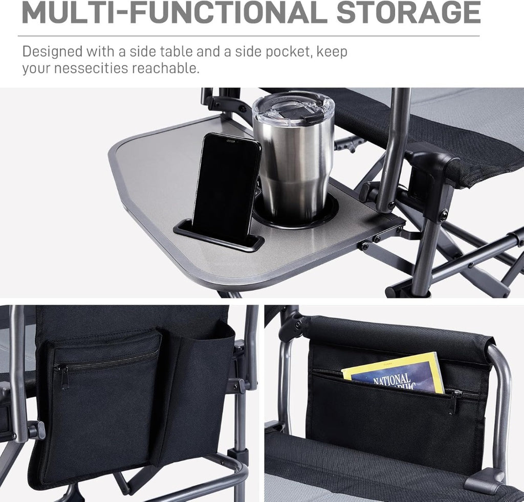 EVER ADVANCED Directors Chair Oversized Camping Chair with Side Table, Oversized Heavy Duty Portable with Side Pocket 180kg Capacity Black