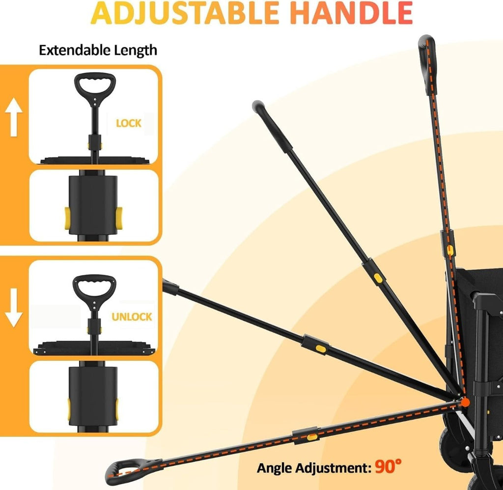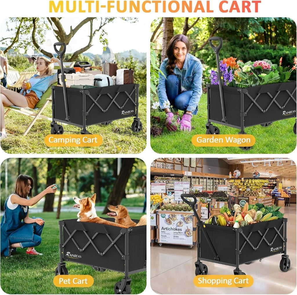 RAINBEAN Folding Trolley Wagon – Heavy Duty 100L Utility Cart for Camping, Beach & Sports, Black