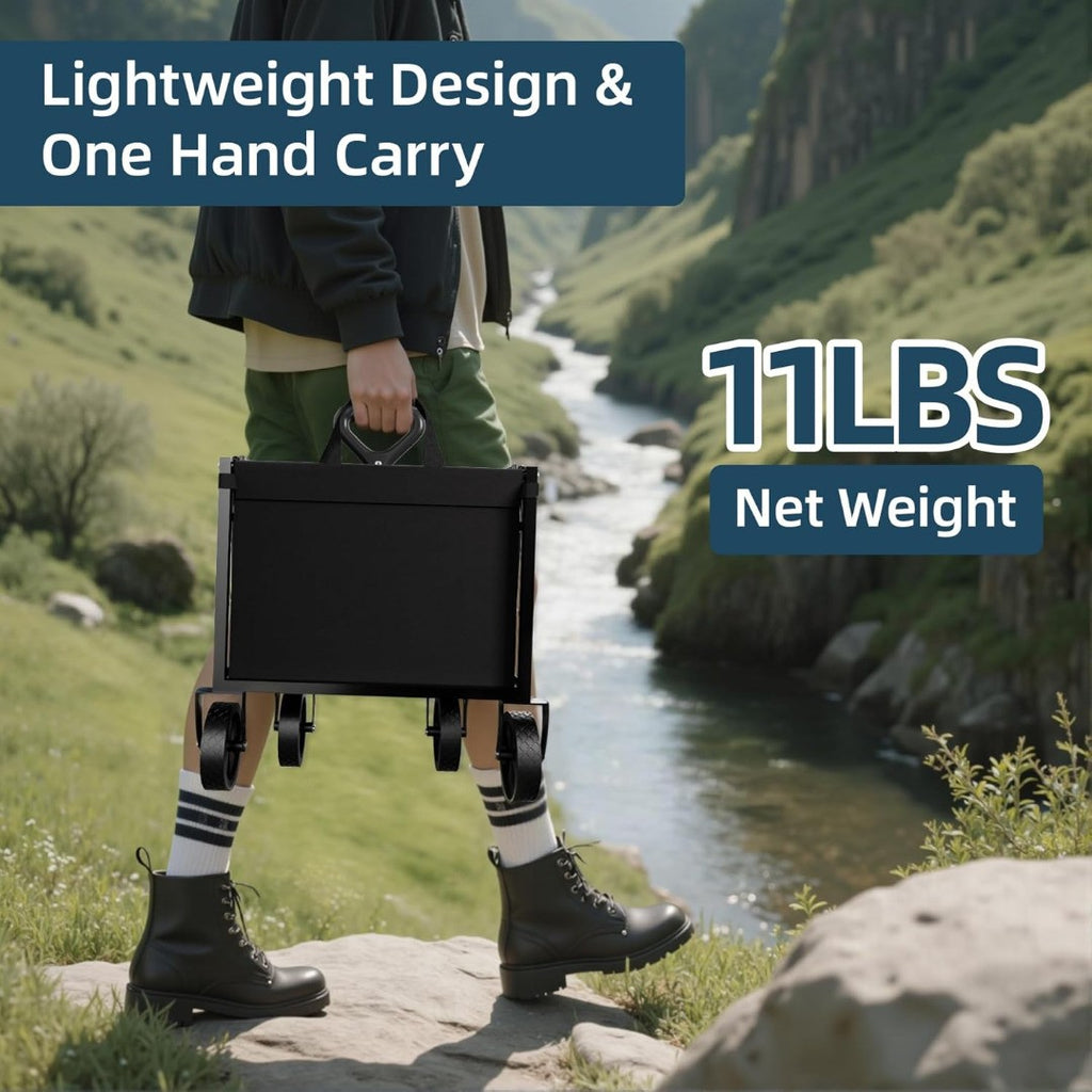 - Compact and Portable Design - It weighs only 12.5lbs and can be folded to a compact size for convenient storage. Our camping trolley can be easily stored in your car trunk or closet. This foldable wagon folds down quickly without any tools, ensuring effortless portability.