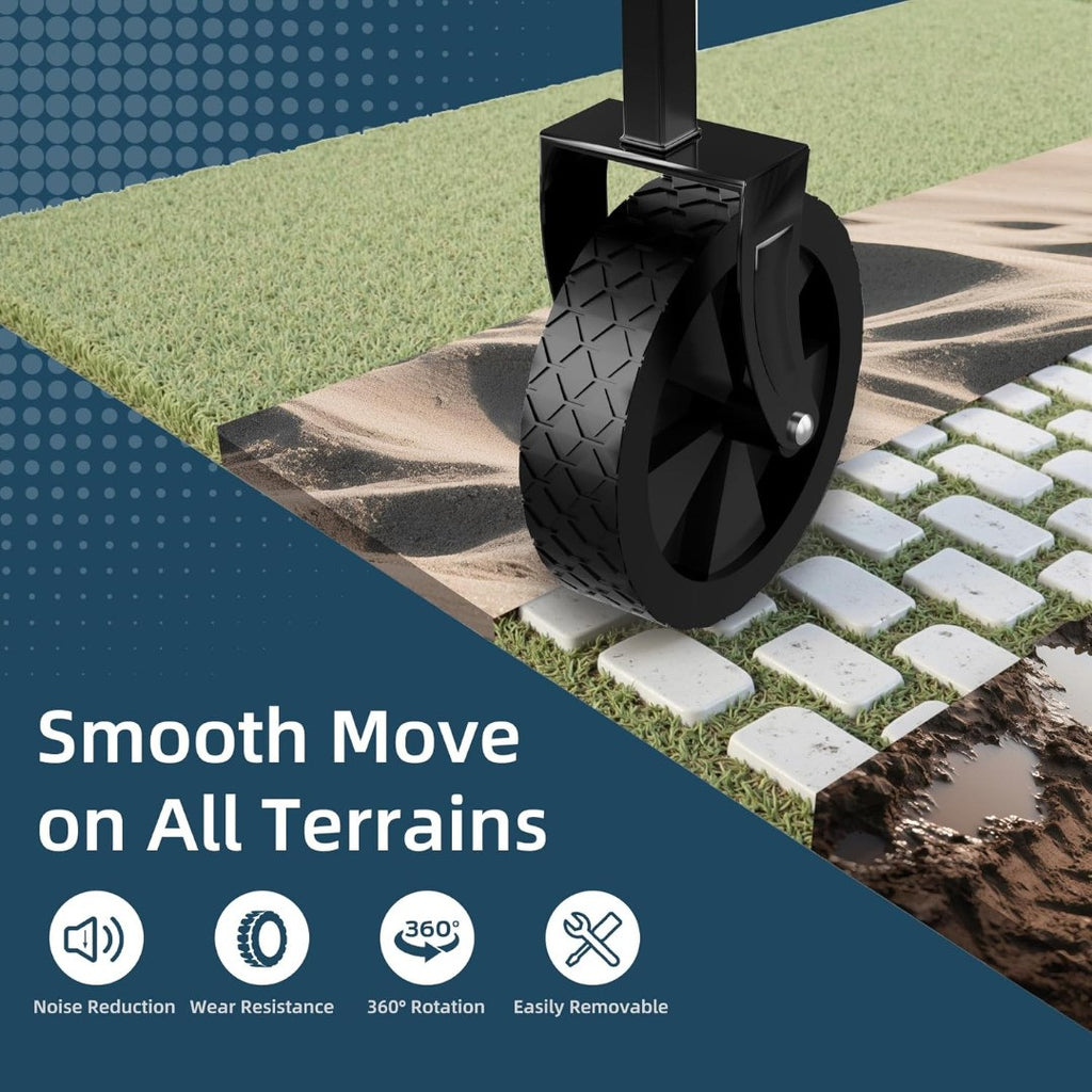- User Friendly Features - Include front 360° swivel wheels that allow for smooth movement across diverse terrains. A dependable brake system ensures safety, while a height-adjustable handle enhances control. Additionally, two front mesh cup holders offer convenient access to beverages.