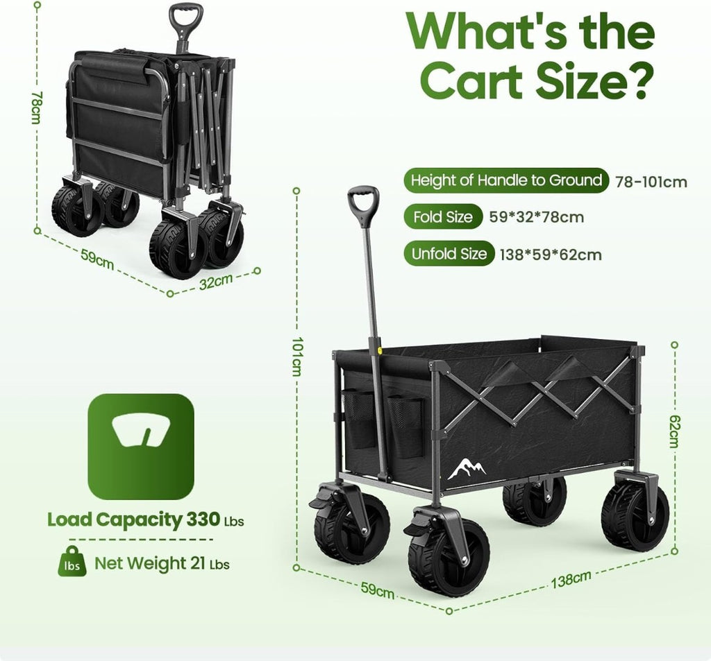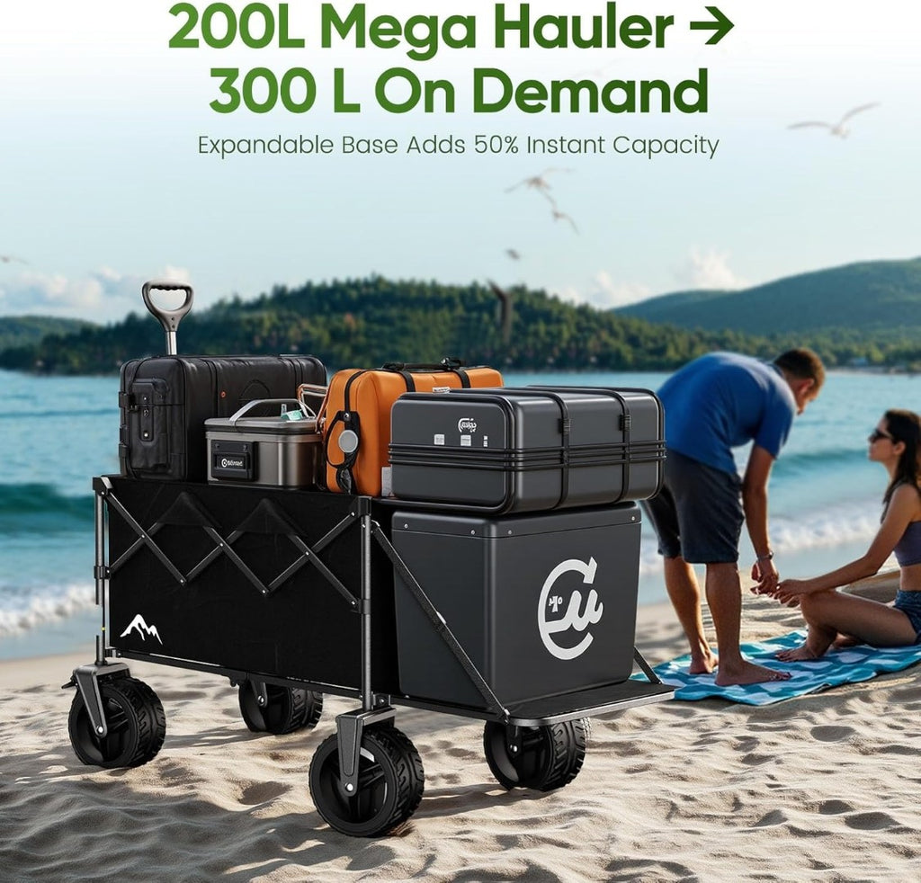 Folding Camping Festival Trolley All-Terrain XL 300L Black