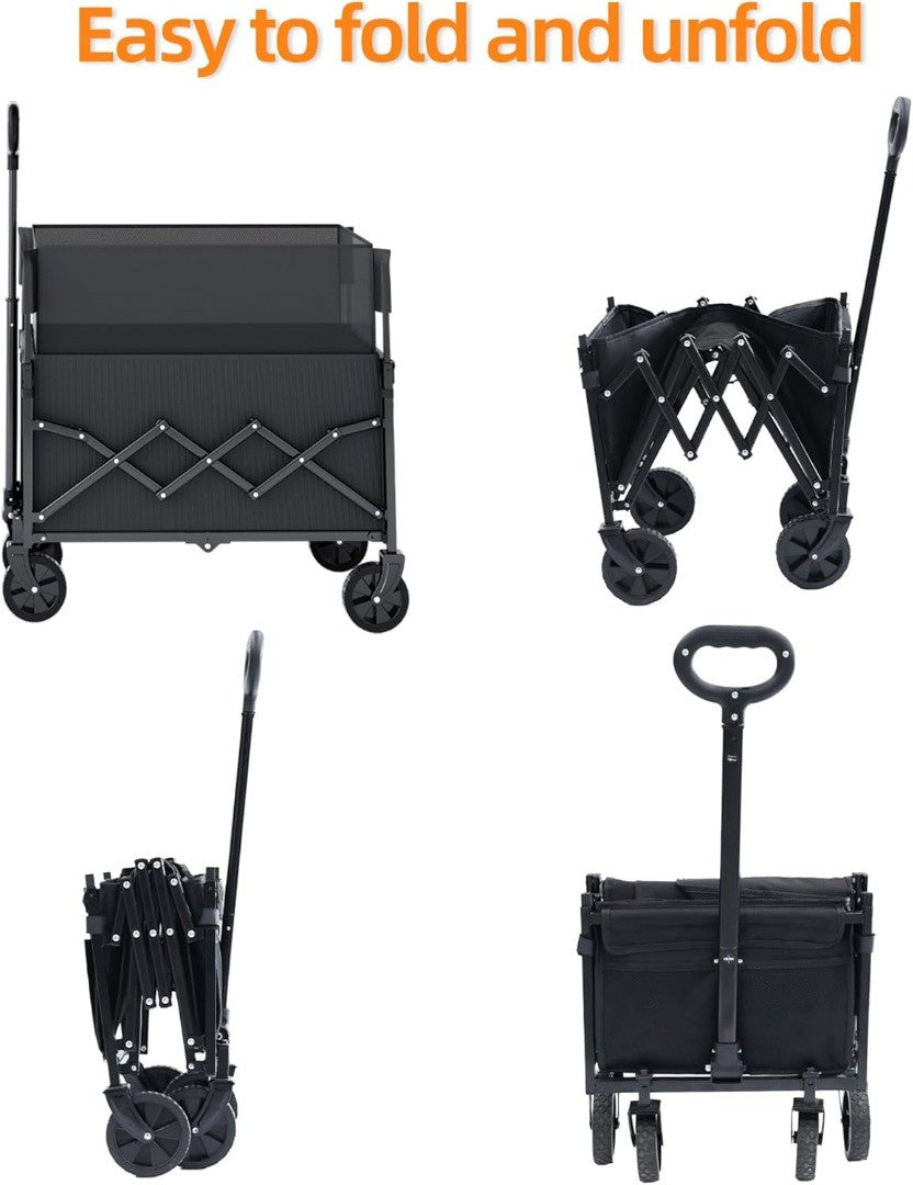 Festival Trolley on Wheels Utility Collapsible Wagon Cart Adjustable Handle for Shopping Camping Gardening and Outdoor Sports 60 to 120L Capacity