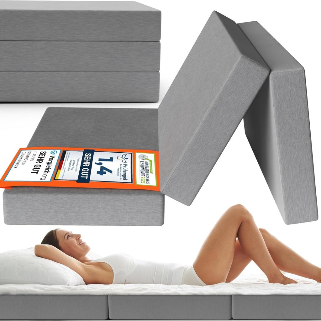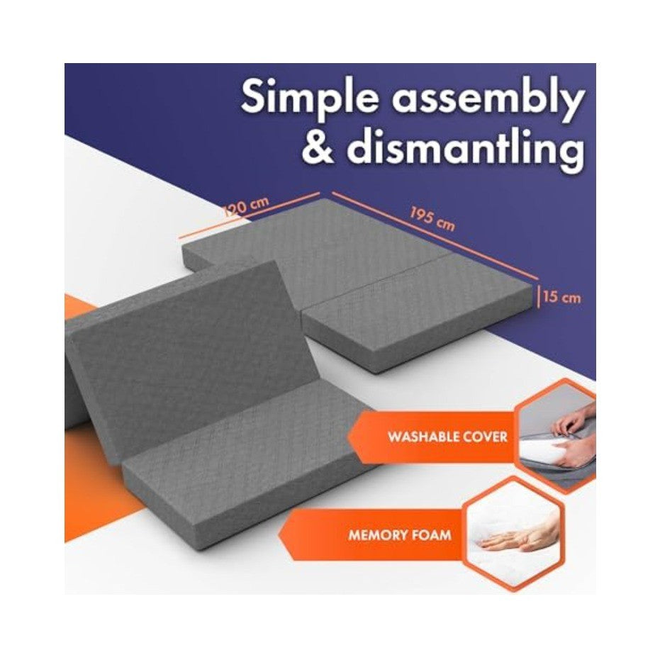 Folding Mattress Double – 14cm Thick Memory Foam, Portable Guest Bed, Travel & Camping