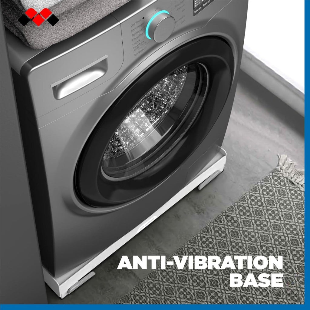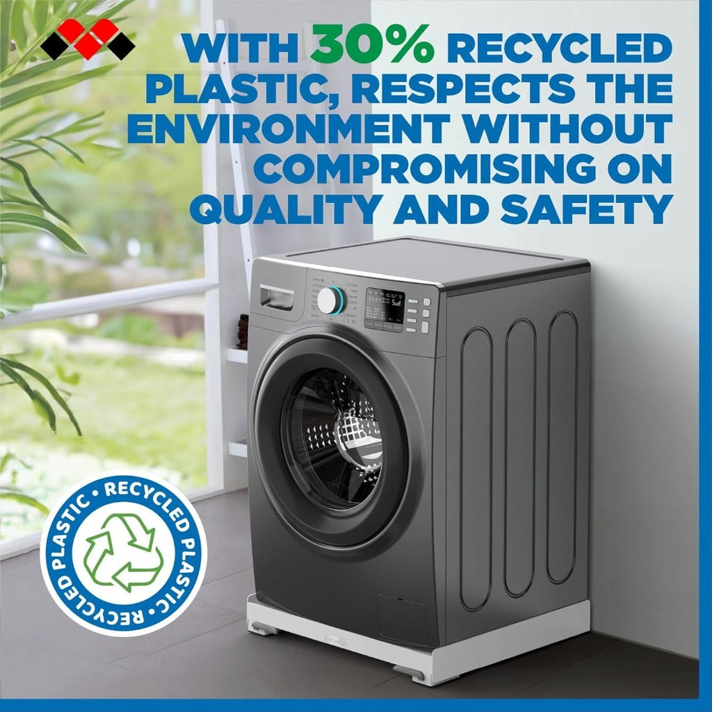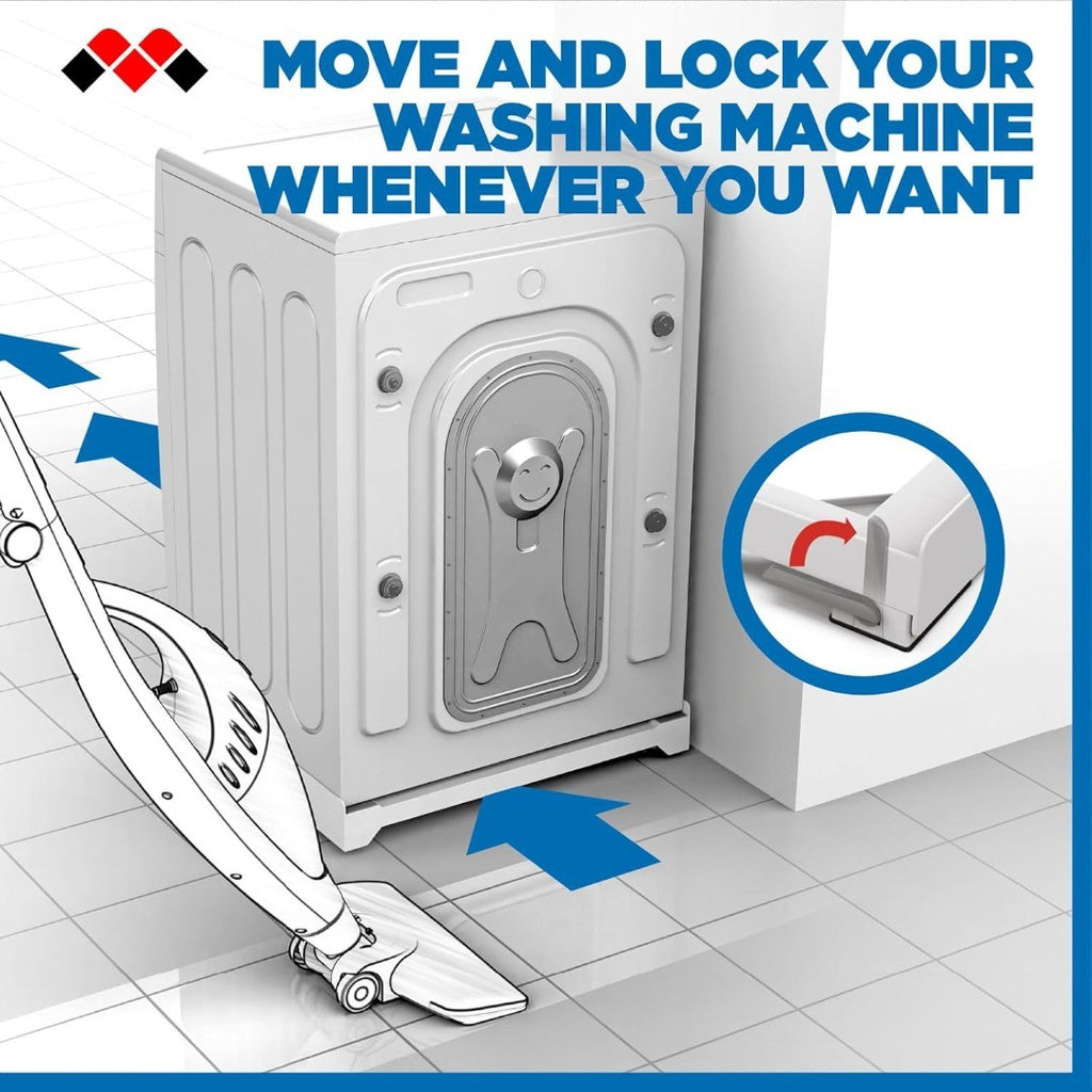 Meliconi Base Wash Evo Anti Vibration Base with Wheels for Easy Moving of the Washing Machine or Dryer with Front Brake Levers, Load Capacity 250 kg, White.