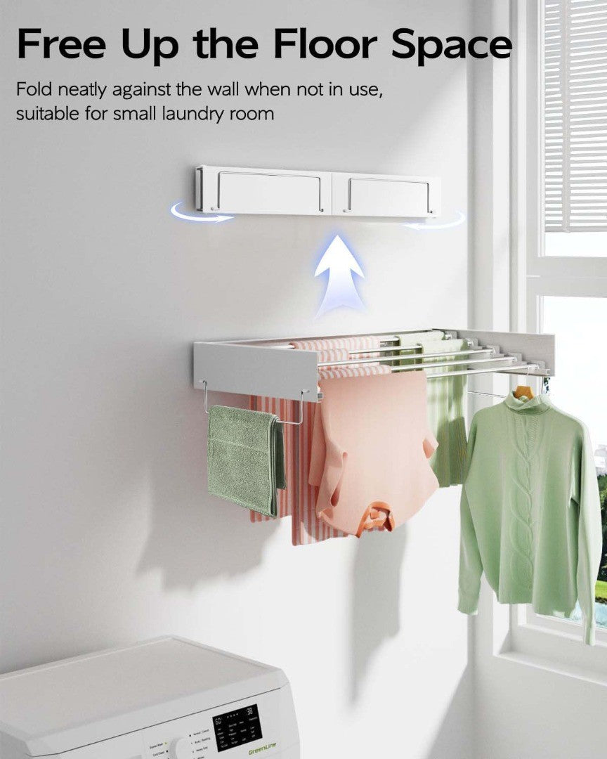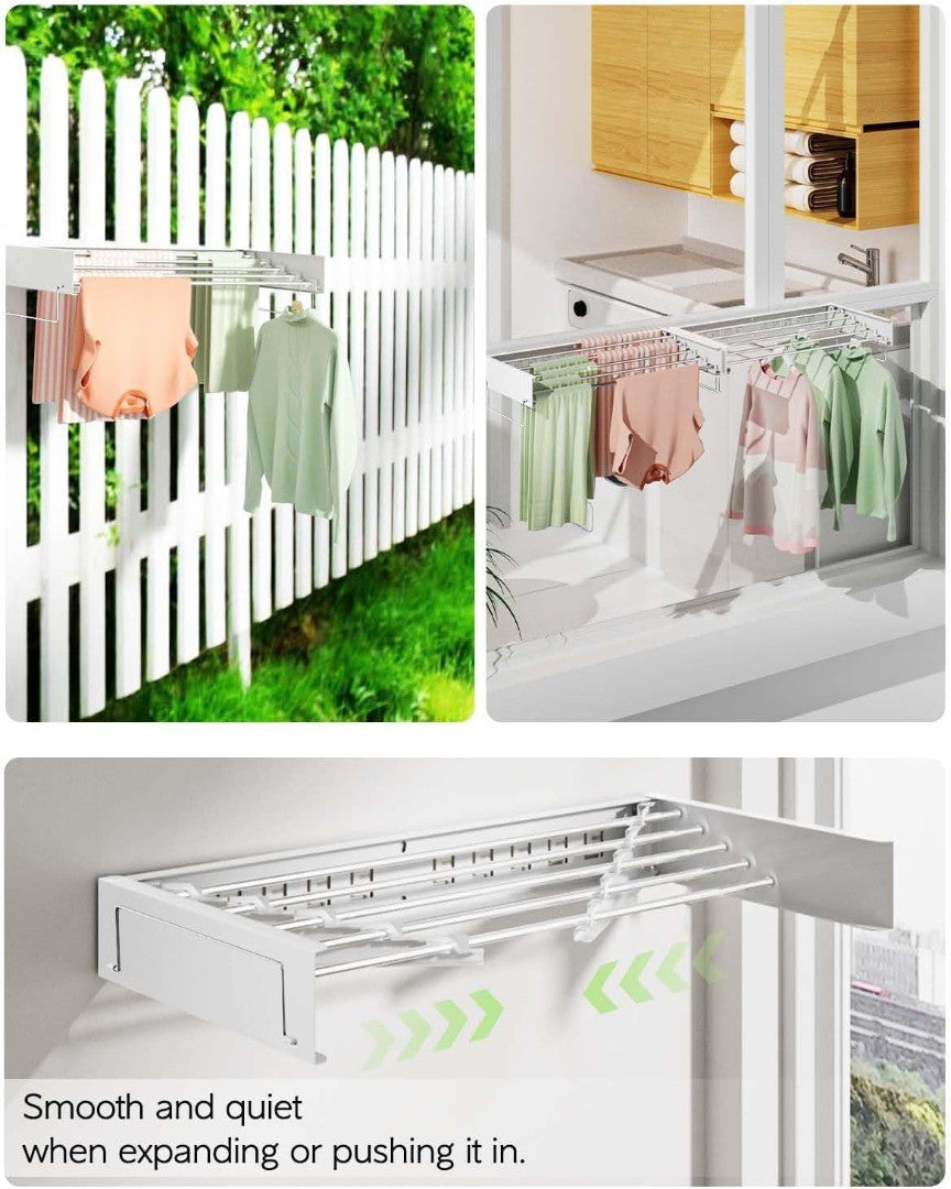Floor Space Saver: Very easy to extend and retract. Smooth and quiet when expanding or pushing it in. This laundry rack folds neatly against the wall when not in use, freeing up the floor space and you will forget it is there. Air dry in a small space and keep your floor space uncluttered and unobstructed.