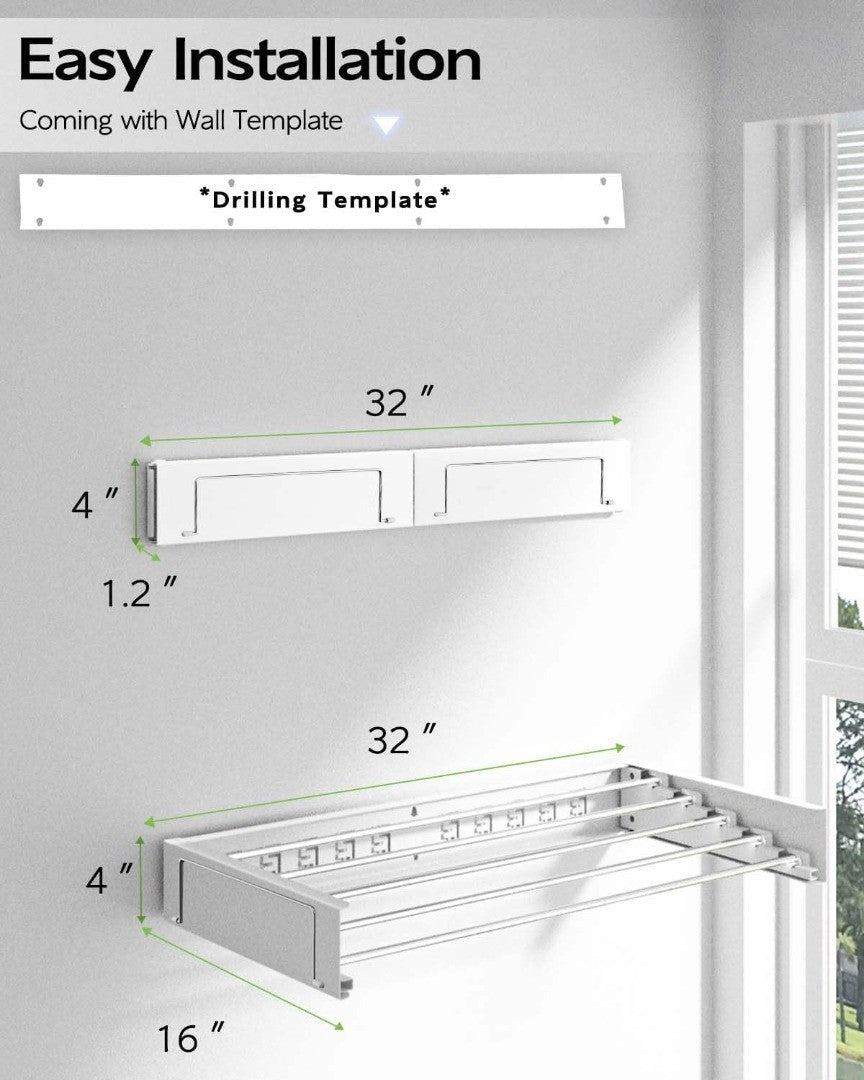 Stylish Appearance: The appearance of the folding drying racks for laundry is sleek and stylish, adding a touch of sophistication to your home's ambiance. VIKAQI clothes rack drying comes pre-assembled and only requires drilling and installation onto the wall to be ready for use. It includes a cardboard template that makes installation really easy.