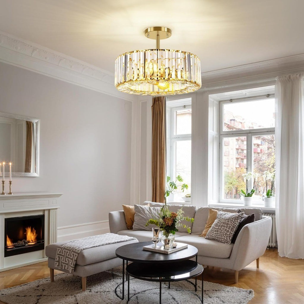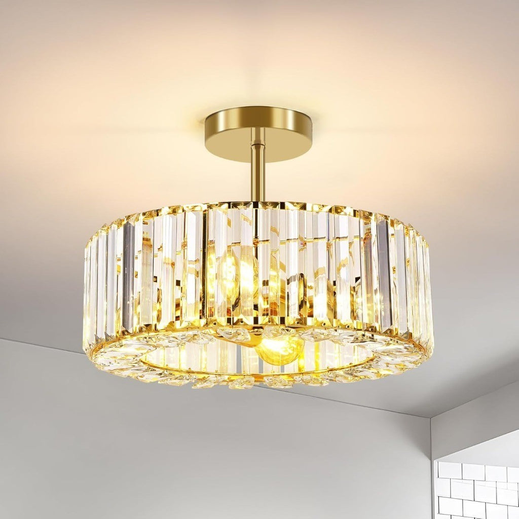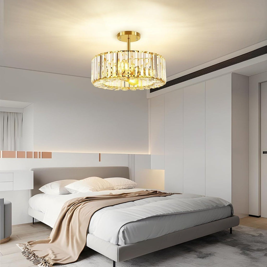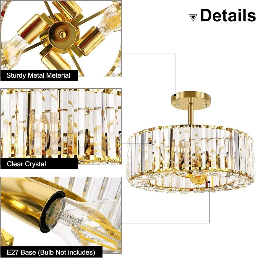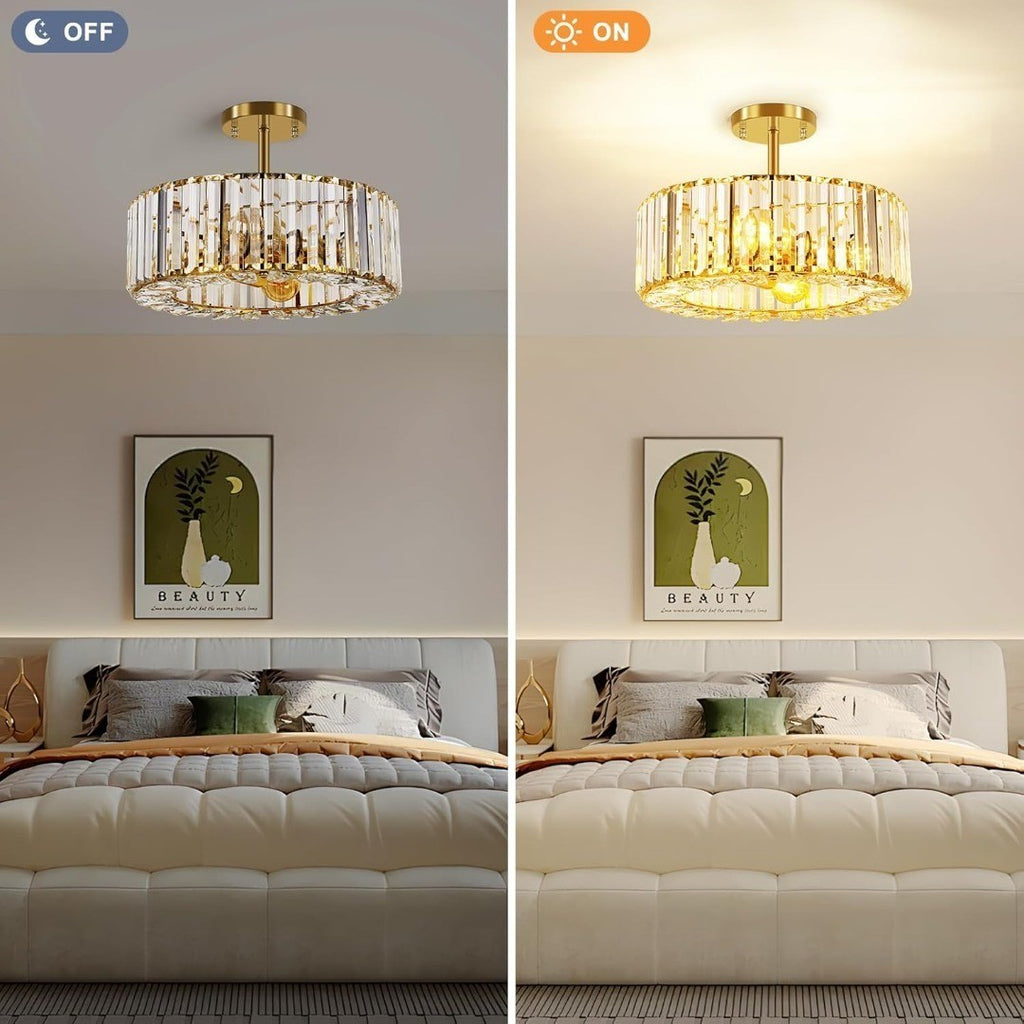 Luxury Ceiling Lighting: The semi flush ceiling light elegant modern design style, pure and transparent crystal once lit will reflect beautiful light and shadow on the ceiling, creating a comfortable and warm atmosphere for your room.