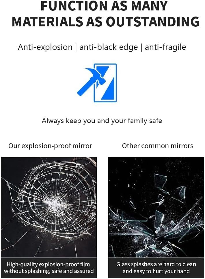 Tempered glass, shatterproof, corrosion resistant: Our led bathroom mirror uses 5mm tempered glass, 20mm aluminium is more stable and durable than ordinary glass, more resistant to fragmentation!