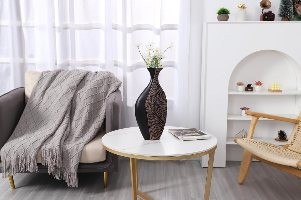Leewadee Decorative Tall Floor Vase for Living Room Decor, 43 cm, Brown, Resin