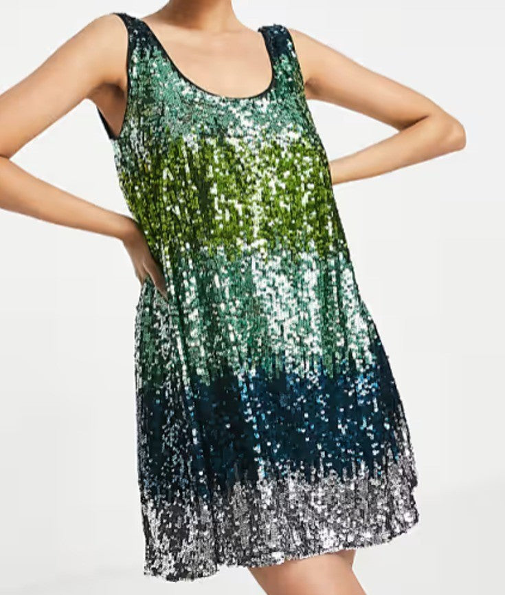 French Connection Womens estari ombre swing sequin dress in ombre blue and green Size XS 71RNB NWT