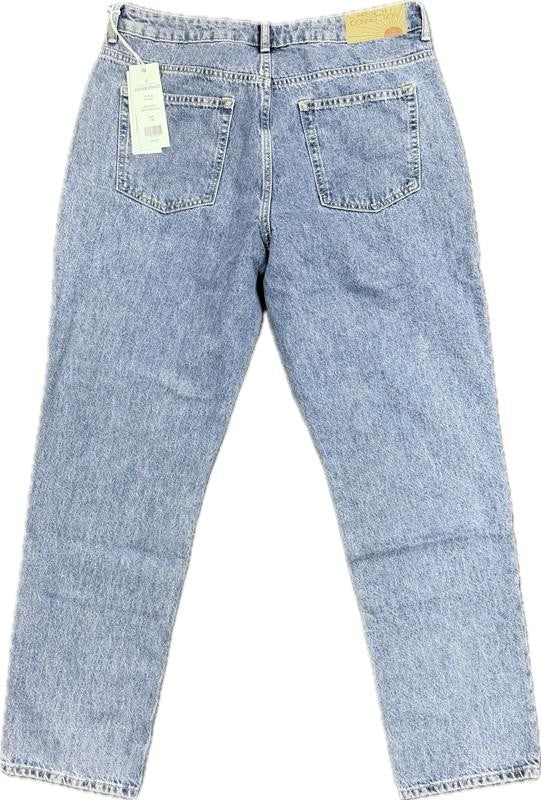 This jean features a classic straight-leg cut with a high-rise design, offering a comfortable fit while flattering the silhouette.