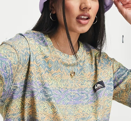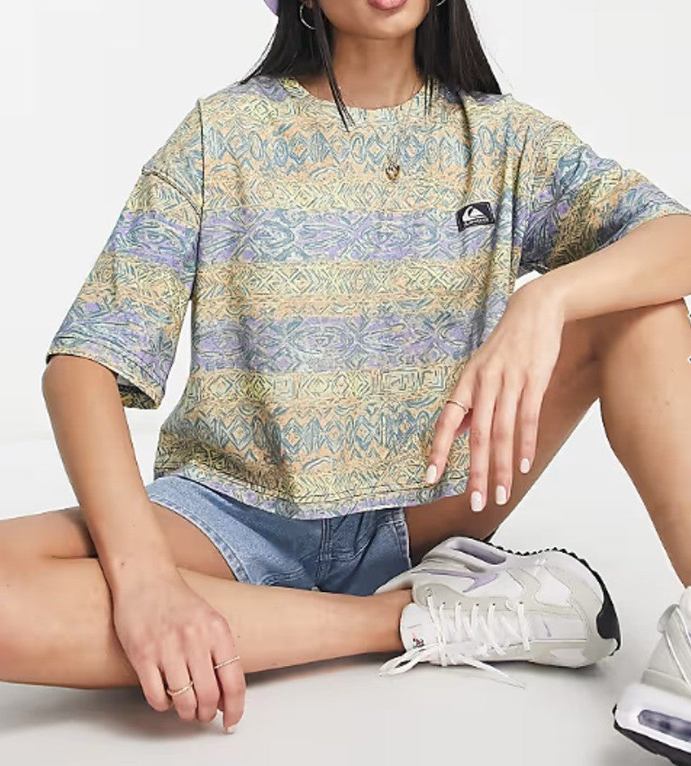 Quiksilver Womens Wave Vibes Aztec Cropped Short Sleeve T-Shirt Multicolour Size M NWT