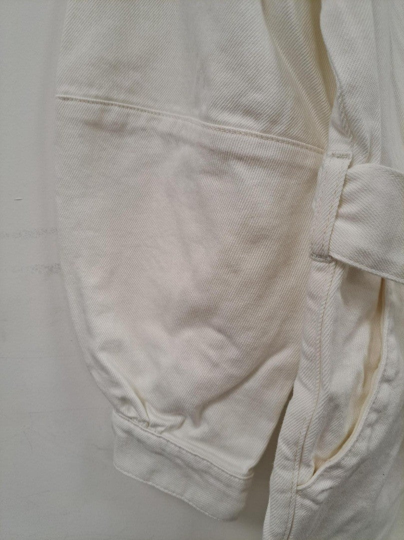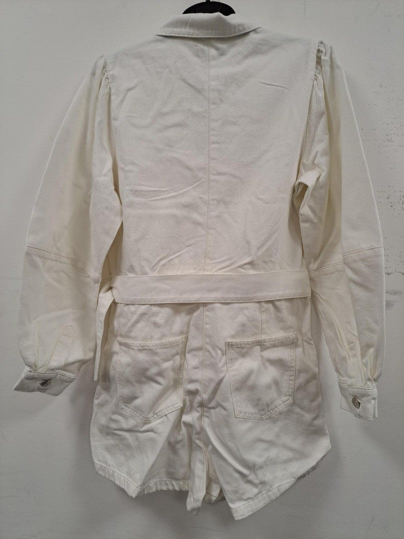 NA-KD Puff Sleeves Denim Playsuit in OffWhite - Size: UK14 / EU42