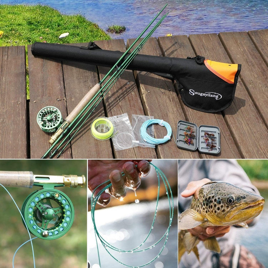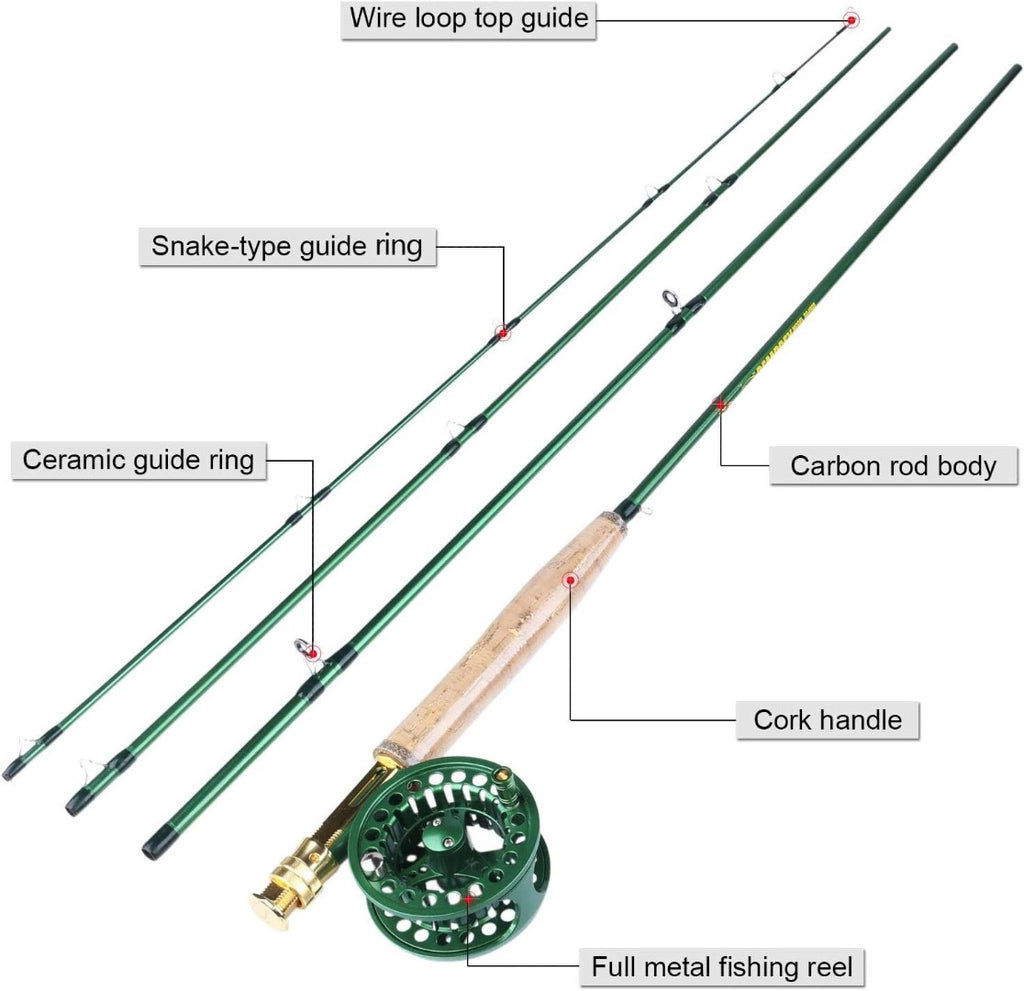 Fly Fishing Rod & Reel Combo Kit Carbon Fibre 9ft Green