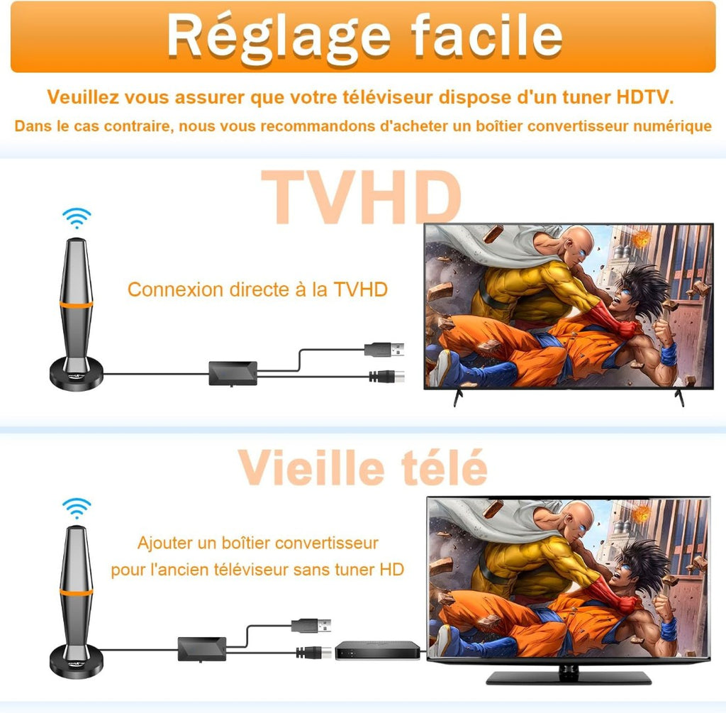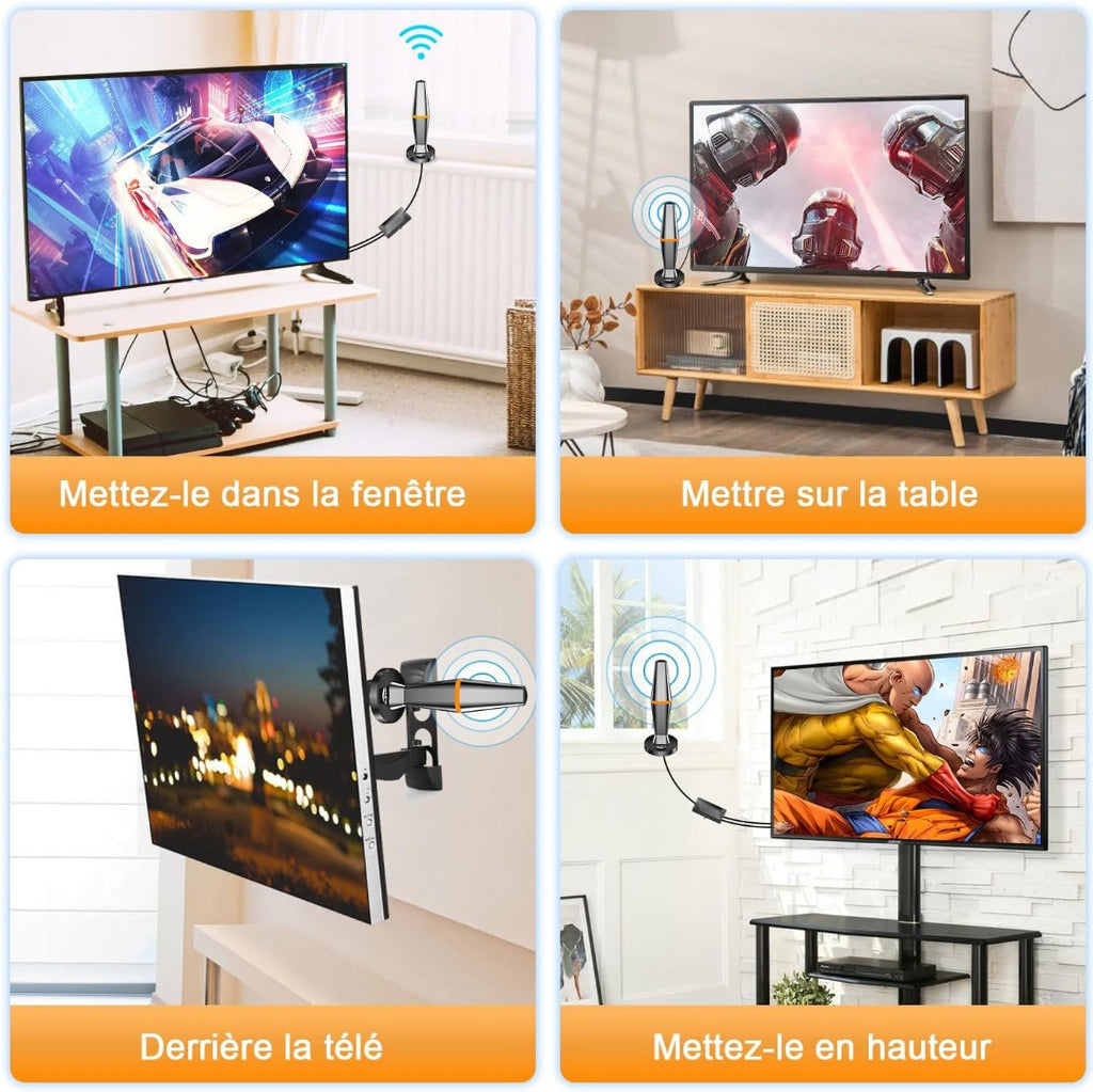 - FREE LIFETIME 4K & HD CHANNELS: With our TV antenna you will never pay HUGELY expensive cable or satellite fees again! Access FREE HD channels. With local news, weather, sitcoms, kids and sports programs, such as TF1, France 2, France 3, Canal+, France 5, M6, Arte, D8, W9, TMC, NT1 etc. Simply connect the antenna to your TV and let it do all the work.