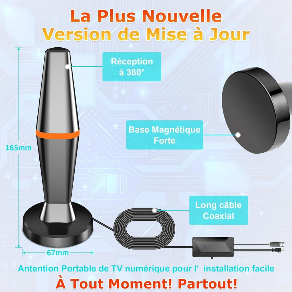 Indoor TV Antenna Powerful Magnetic Base 420km 360 Degree Long Range HD