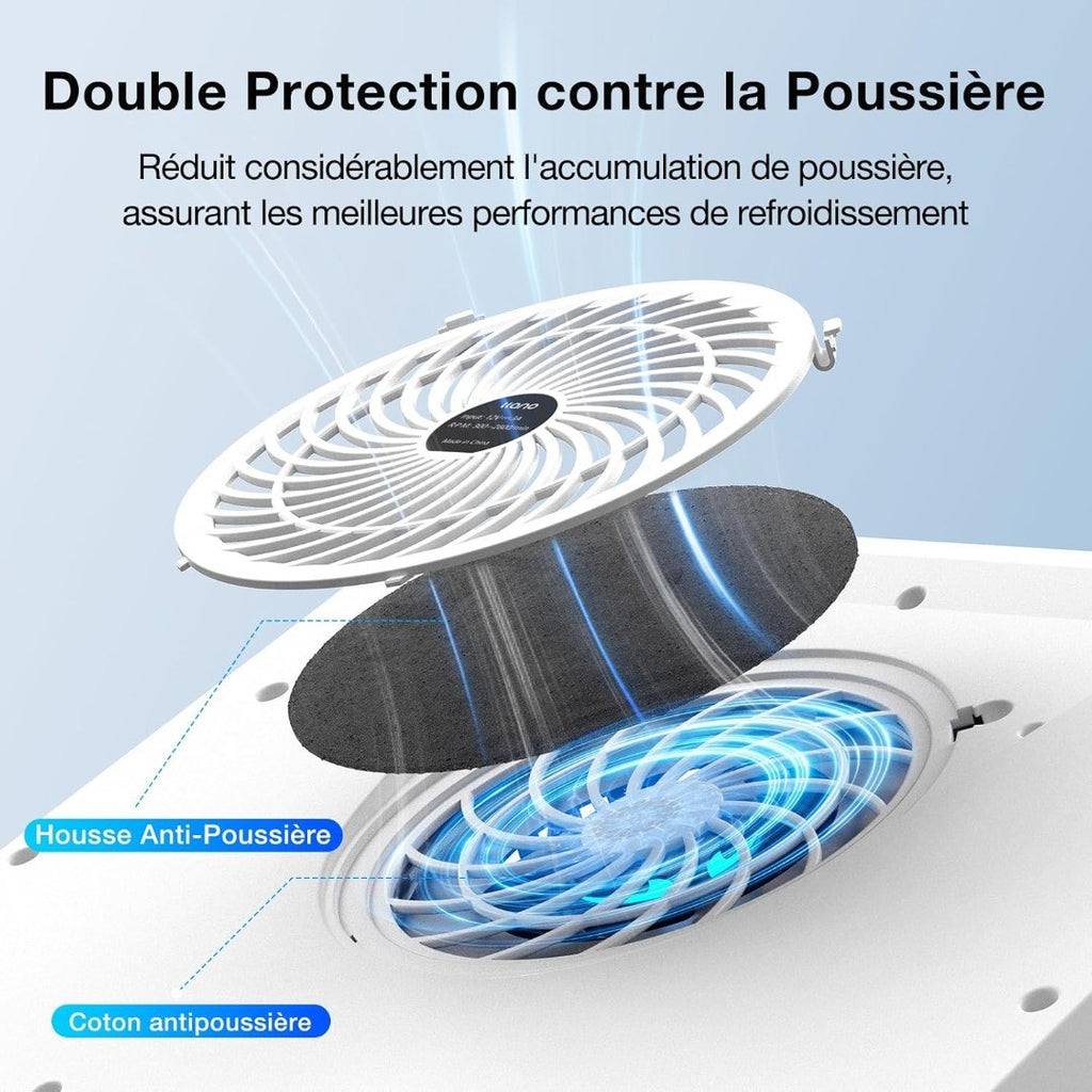 Advanced Dust Protection: With an advanced dust filter and a specially designed structure, pc gaming computer laptop cooler acts as a shield against dust intrusion, significantly extending your laptop's lifespan. The package includes an extra dust filter for added convenience